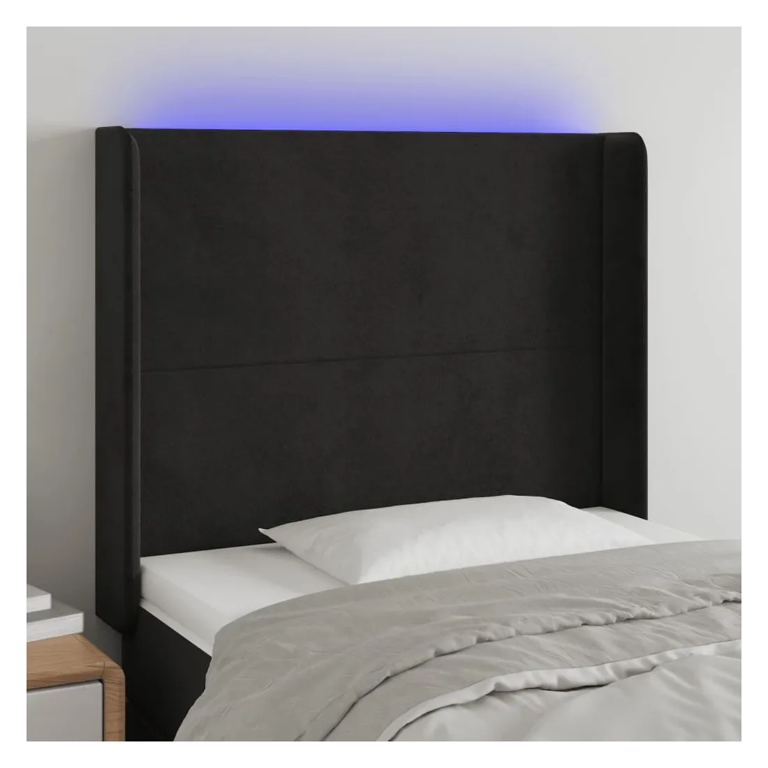 Cette tête de lit à LED classique, au design élégant, donne à votre cadre de lit une touche de modernité étonnante et convient parfaitement à toute chambre à coucher. Velours doux : le velours est un tissu doux et luxueux qui se reconnaît à son tas dense de fibres uniformément coupées qui ont une touche lisse. Le tissu en velours présente un toucher doux distinctif, ce qui le rend confortable au toucher.LED colorée : apportez de l'éclairage dans l'obscurité avec des lumières LED colorées !Hauteur réglable : la tête de lit est réglable en hauteur selon vos préférences.Excellent soutien : la tête de lit vous offre un excellent soutien du dos lorsque vous êtes assis dans votre lit pour lire ou regarder la télévision.Bande à LED découpable : cette bande à LED flexible peut être ajustée en longueur. Le symbole des ciseaux indique où la bande peut être coupée en toute sécurité sans l'endommager. Remarque :Seule la partie avec un symbole de ciseaux peut être coupée et seule la partie avec l'USB continuera à fonctionner comme avant.Chaque produit est livré avec un manuel de montage dans la boîte pour un montage facile.Ce produit est doté d'un connecteur USB, mais la source d'alimentation certifiée de USB 5V n'est pas incluse.