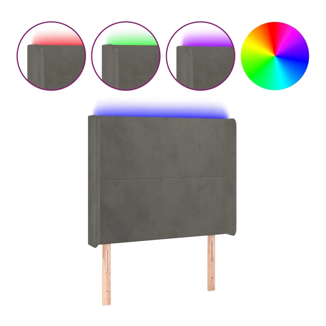 Tête de lit à LED Gris foncé 93x16x118/128 cm Velours