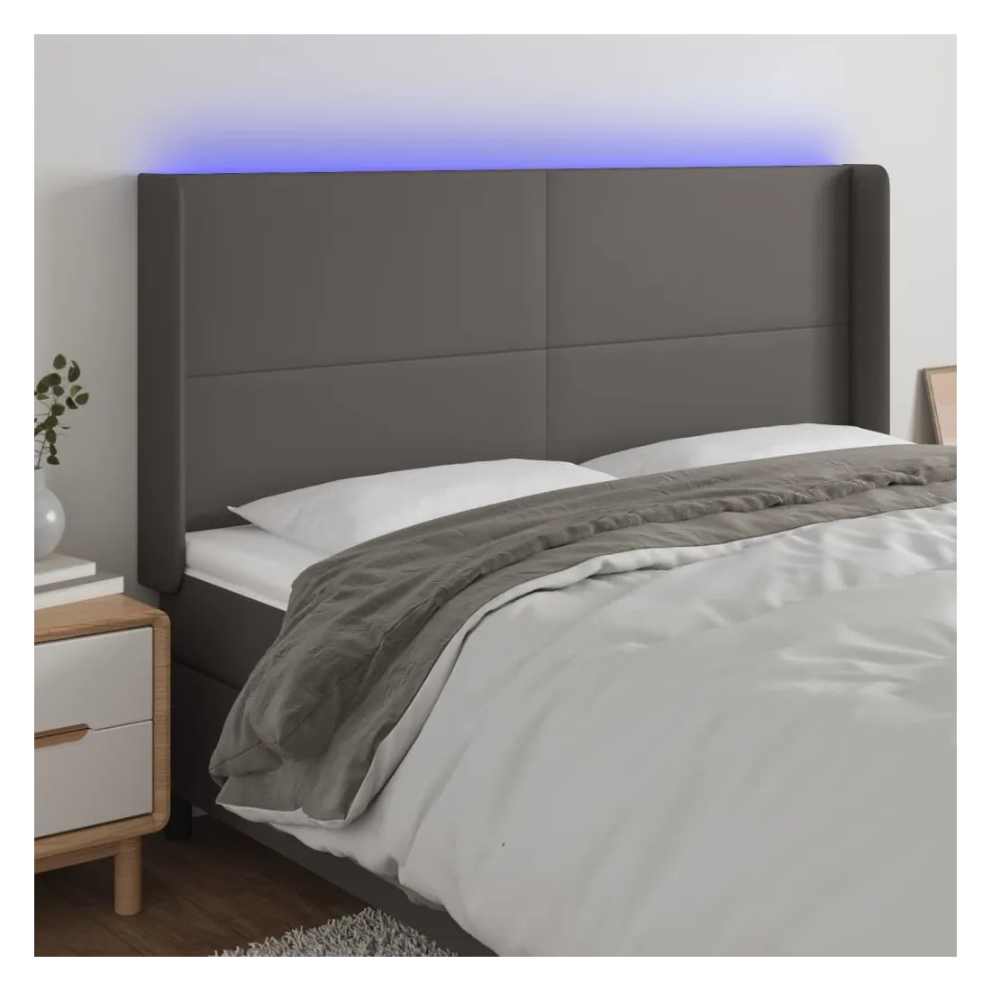 Tête de lit à LED Gris 203x16x118/128 cm Similicuir