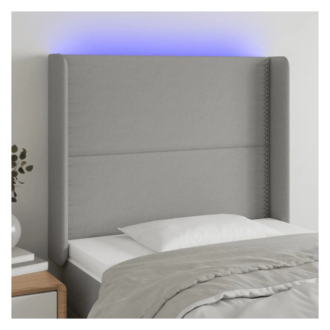Tête de lit à LED Gris clair 93x16x118/128 cm Tissu