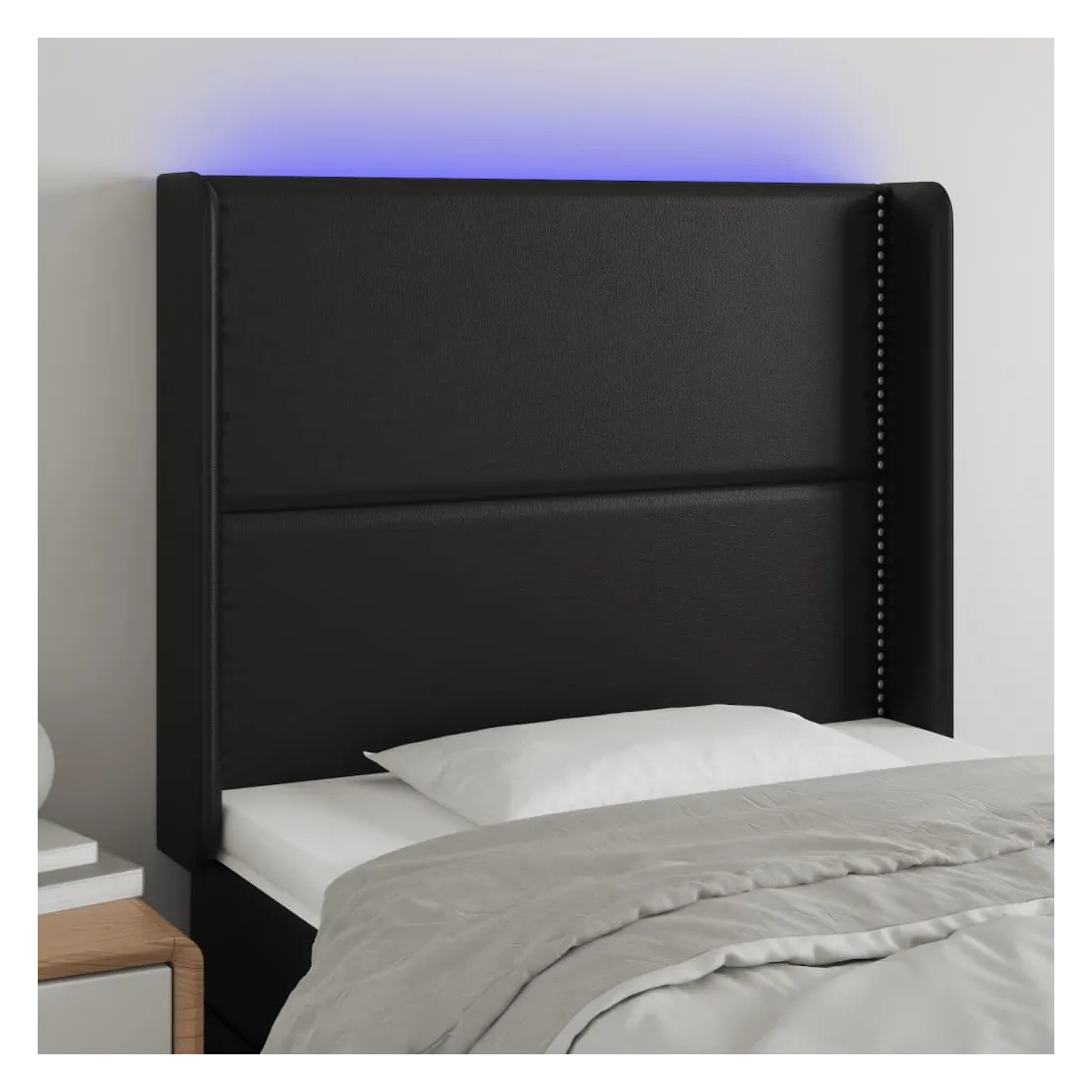 Cette tête de lit à LED classique, au design élégant, donne à votre cadre de lit une touche de modernité étonnante et convient parfaitement à toute chambre à coucher. Similicuir durable : le similicuir de qualité supérieure est un matériau très durable. Il est résistant aux taches, ce qui le rend facile à nettoyer avec un chiffon humide. La surface lisse donne également un aspect luxueux et la beauté du cuir véritable.LED colorée : apportez de l'éclairage dans l'obscurité avec des lumières LED colorées !Hauteur réglable : la tête de lit est réglable en hauteur selon vos préférences.Excellent soutien : la tête de lit vous offre un excellent soutien du dos lorsque vous êtes assis dans votre lit pour lire ou regarder la télévision.Bande à LED découpable : cette bande à LED flexible peut être ajustée en longueur. Le symbole des ciseaux indique où la bande peut être coupée en toute sécurité sans l'endommager. Remarque :Seule la partie avec un symbole de ciseaux peut être coupée et seule la partie avec l'USB continuera à fonctionner comme avant.Chaque produit est livré avec un manuel de montage dans la boîte pour un montage facile.Ce produit est doté d'un connecteur USB, mais la source d'alimentation certifiée de USB 5V n'est pas incluse.