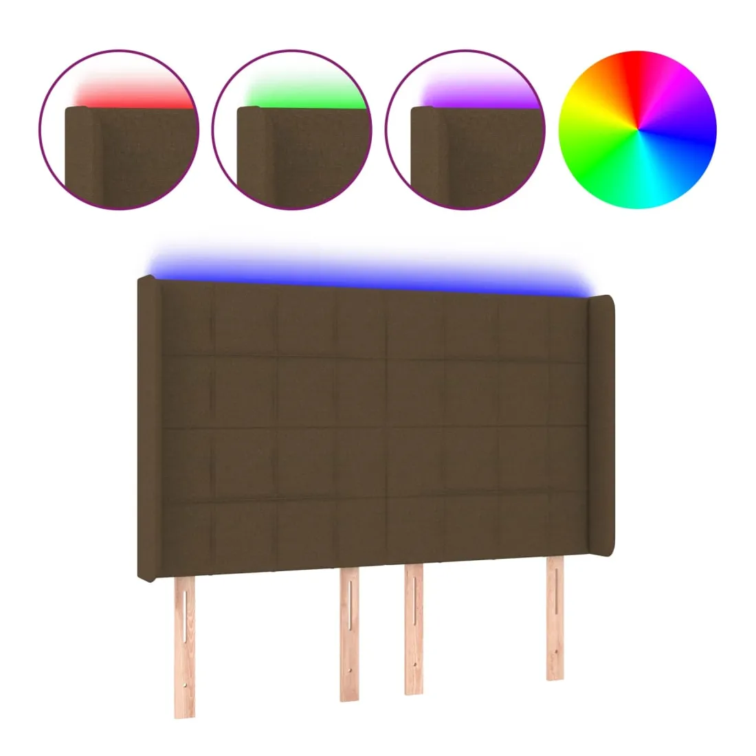 Tête de lit à LED Marron foncé 147x16x118/128 cm Tissu