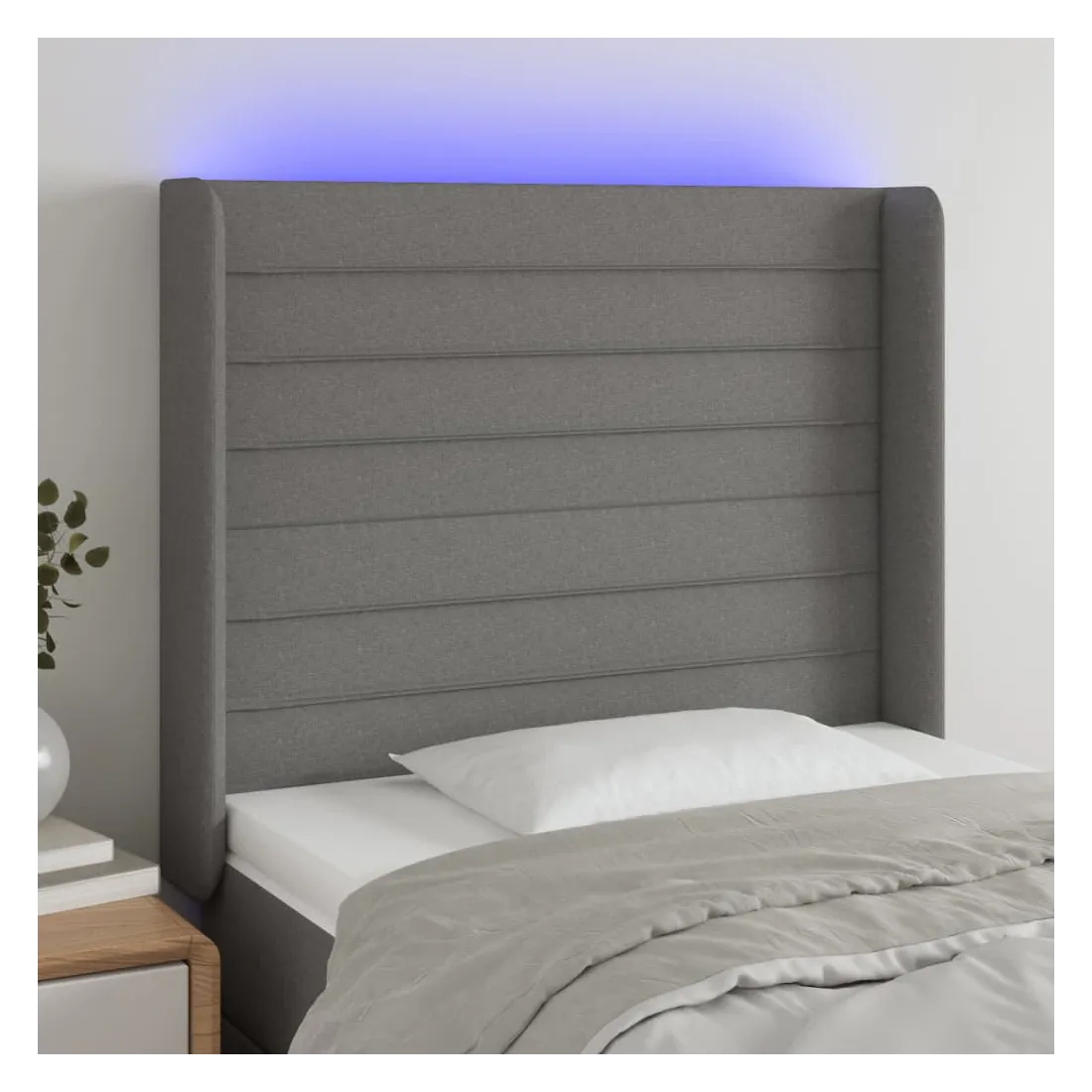Cette tête de lit à LED classique, au design élégant, donne à votre cadre de lit une touche de modernité étonnante et convient parfaitement à toute chambre à coucher. Tissu durable : le tissu présente un aspect simple et épuré, et il est respirant et durable. LED colorée : apportez de l'éclairage dans l'obscurité avec des lumières LED colorées ! Hauteur réglable : la tête de lit est réglable en hauteur selon vos préférences. Excellent soutien : la tête de lit vous offre un excellent soutien du dos lorsque vous êtes assis dans votre lit pour lire ou regarder la télévision. Bande à LED découpable : cette bande à LED flexible peut être ajustée en longueur. Le symbole des ciseaux indique où la bande peut être coupée en toute sécurité sans l'endommager. Remarque : Seule la partie avec un sy