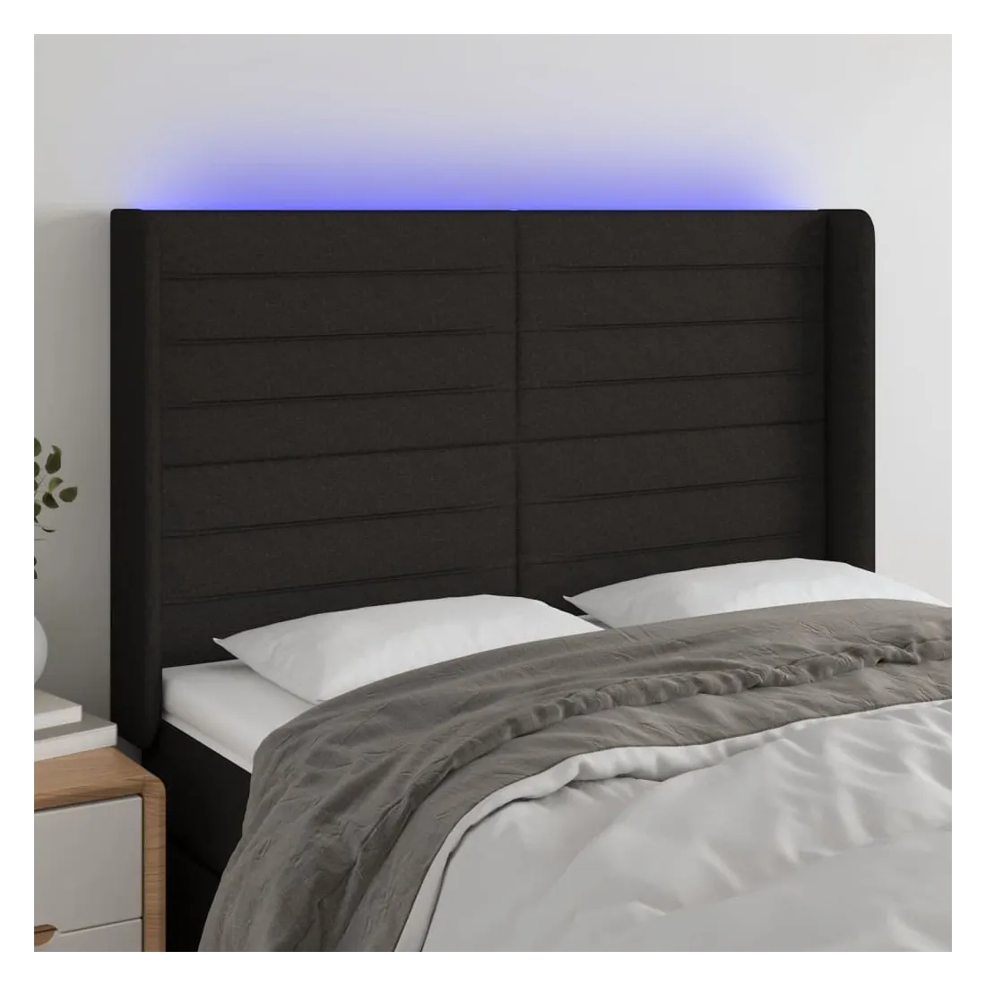 Tête de lit à LED Noir 147x16x118/128 cm Tissu