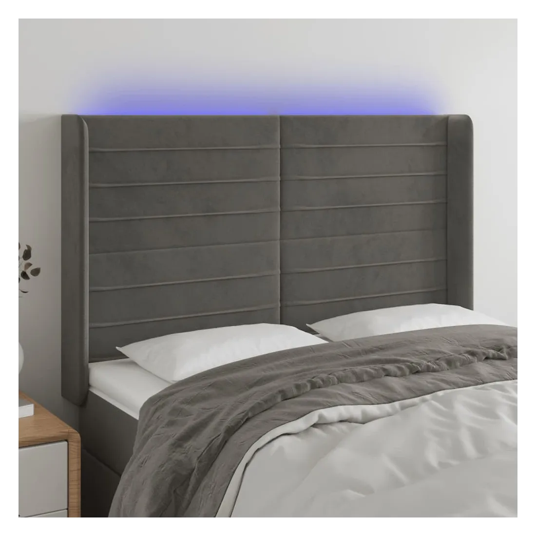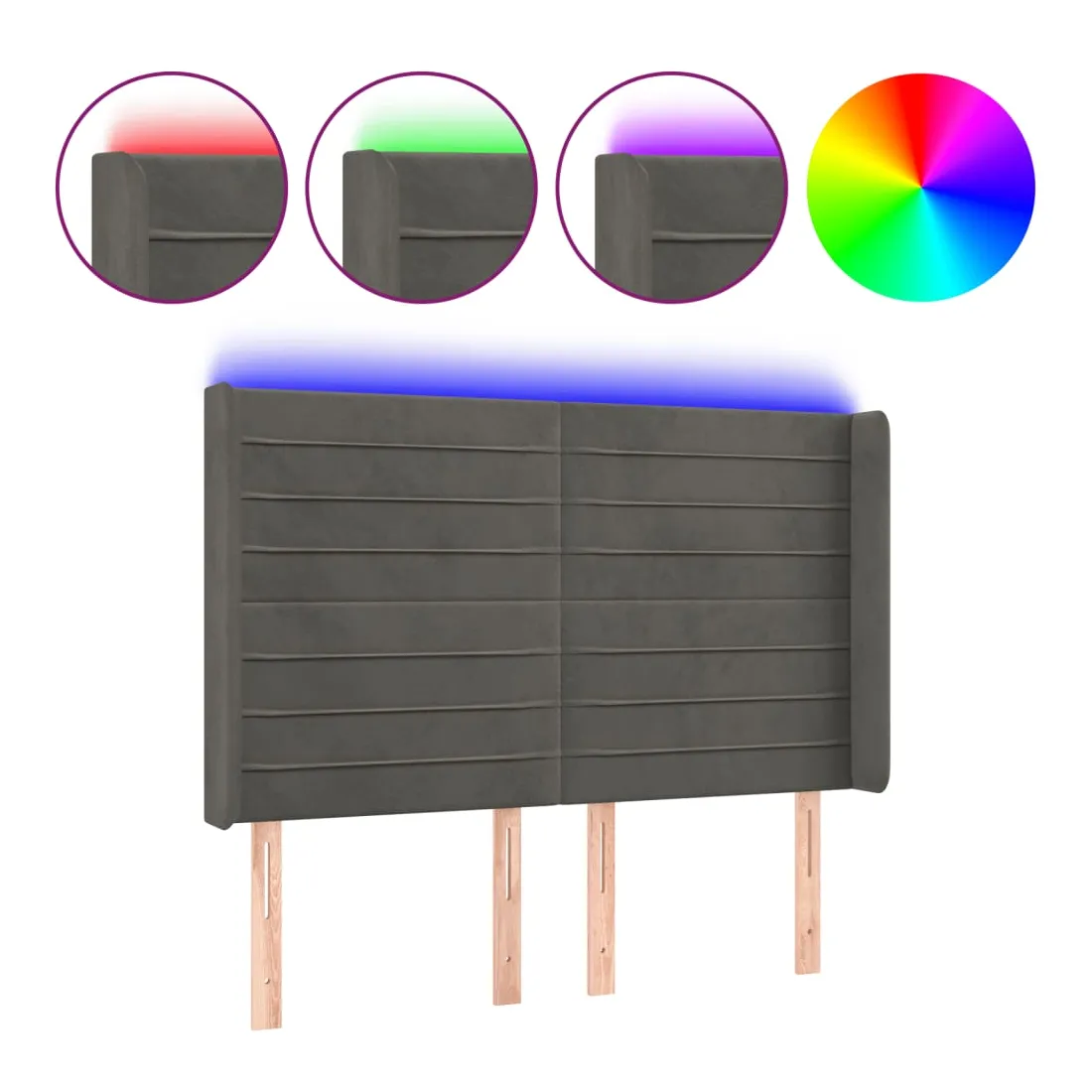 Tête de lit à LED Gris foncé 147x16x118/128 cm Velours