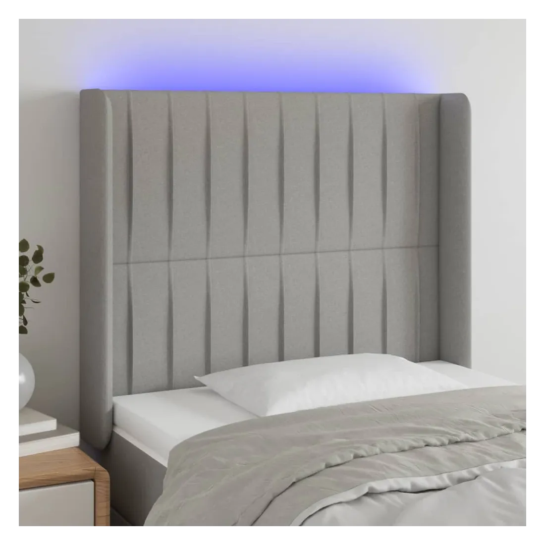 Tête de lit à LED Gris clair 93x16x118/128 cm Tissu