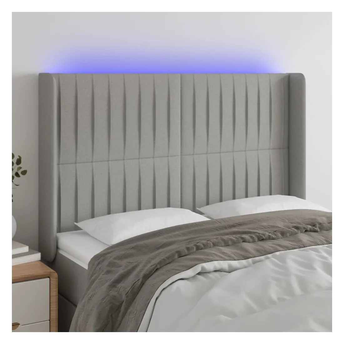 Tête de lit à LED Gris clair 147x16x118/128 cm Tissu