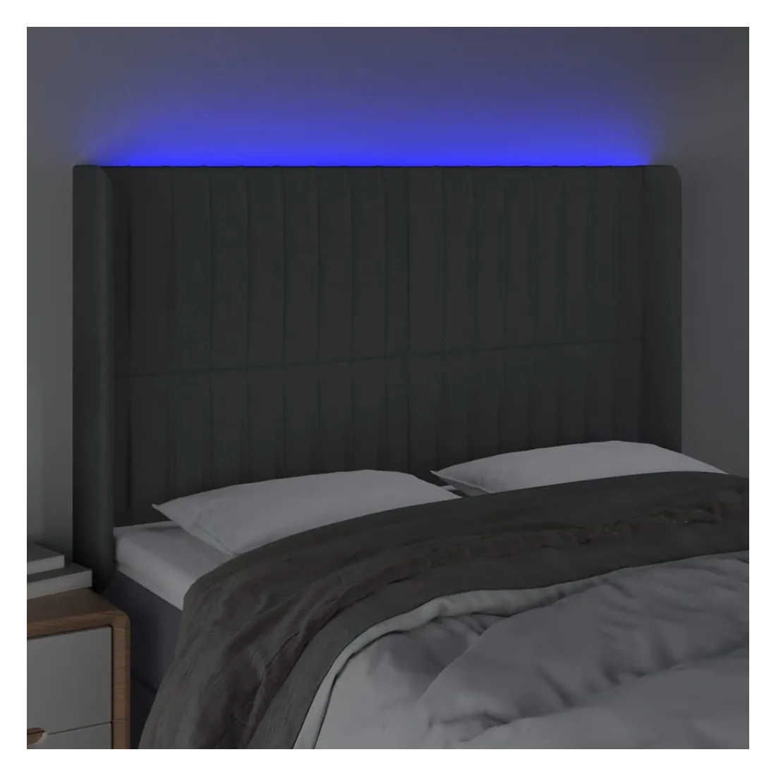 Tête de lit à LED Gris foncé 147x16x118/128 cm Tissu