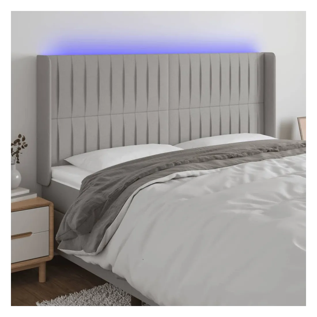 Tête de lit à LED Gris clair 163x16x118/128 cm Tissu