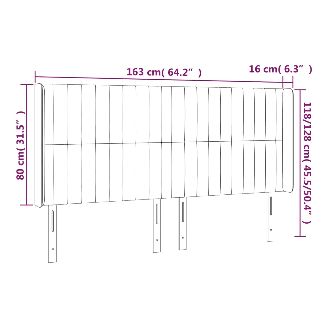 163 x 16 x 118/128 cm