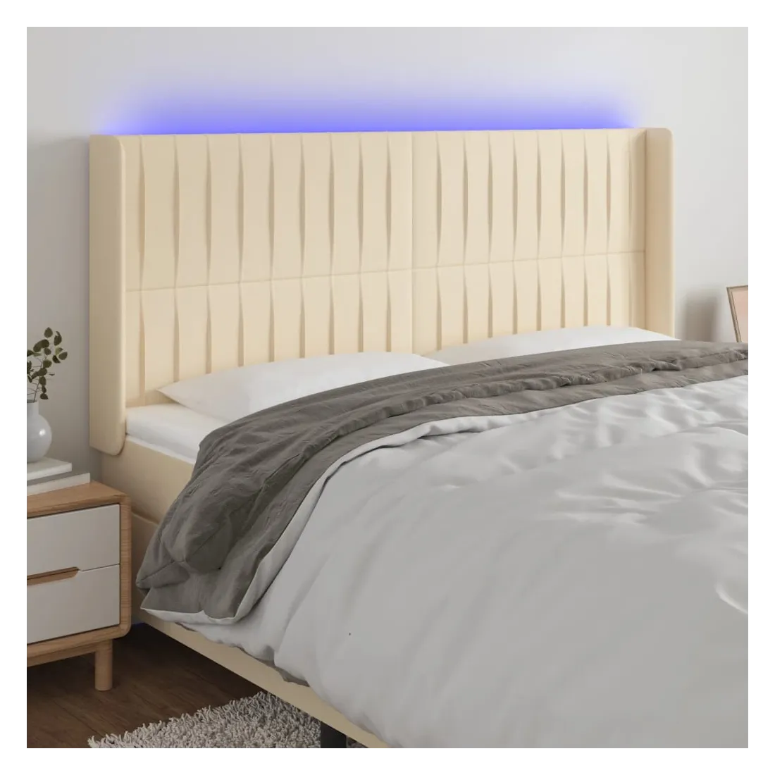 Tête de lit à LED Crème 183x16x118/128 cm Tissu