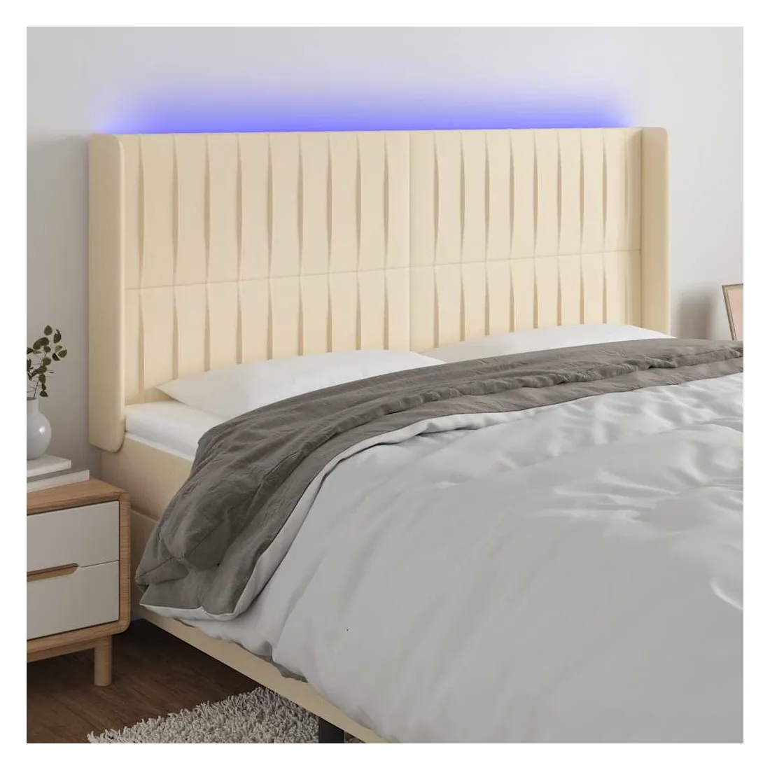 Tête de lit à LED Crème 203x16x118/128 cm Tissu