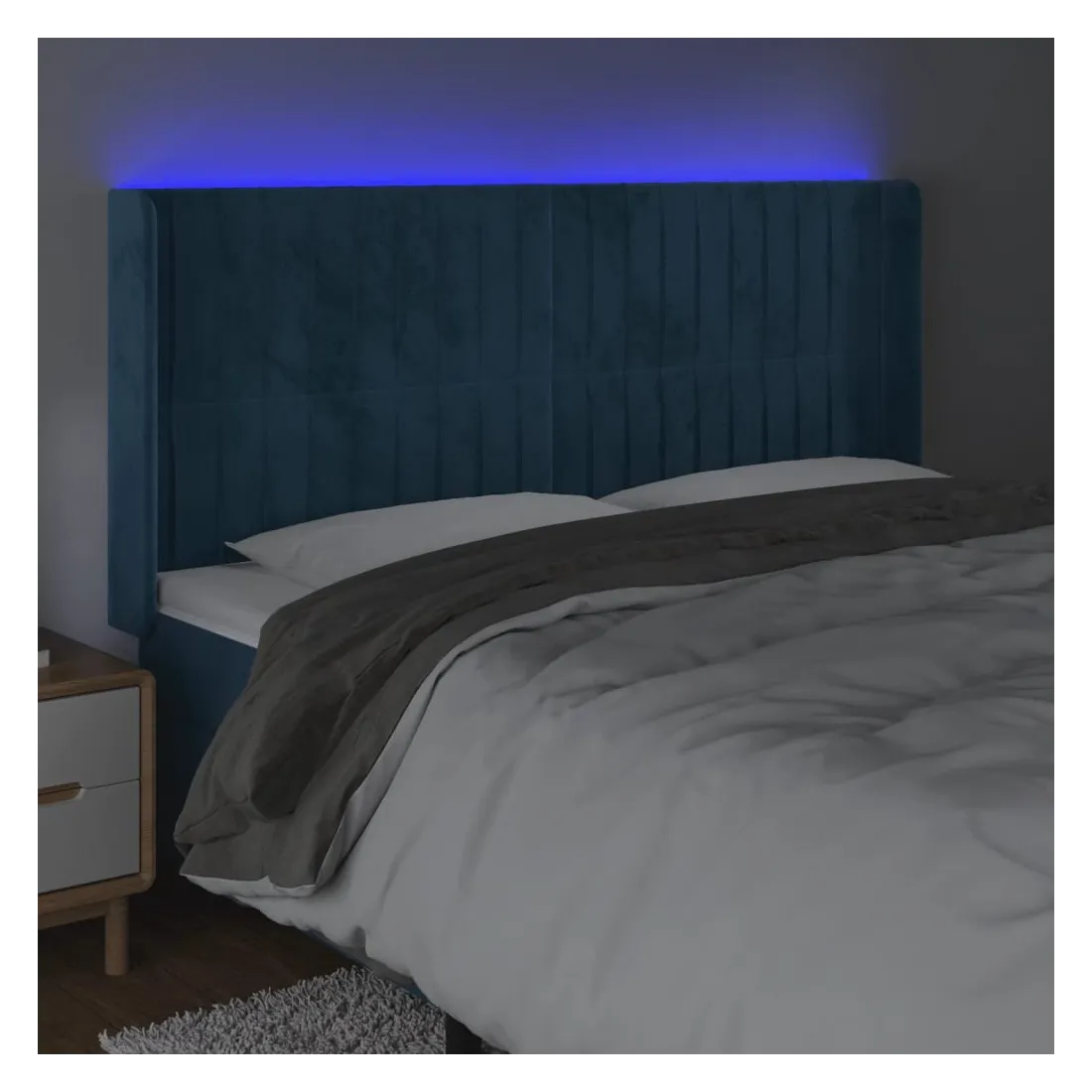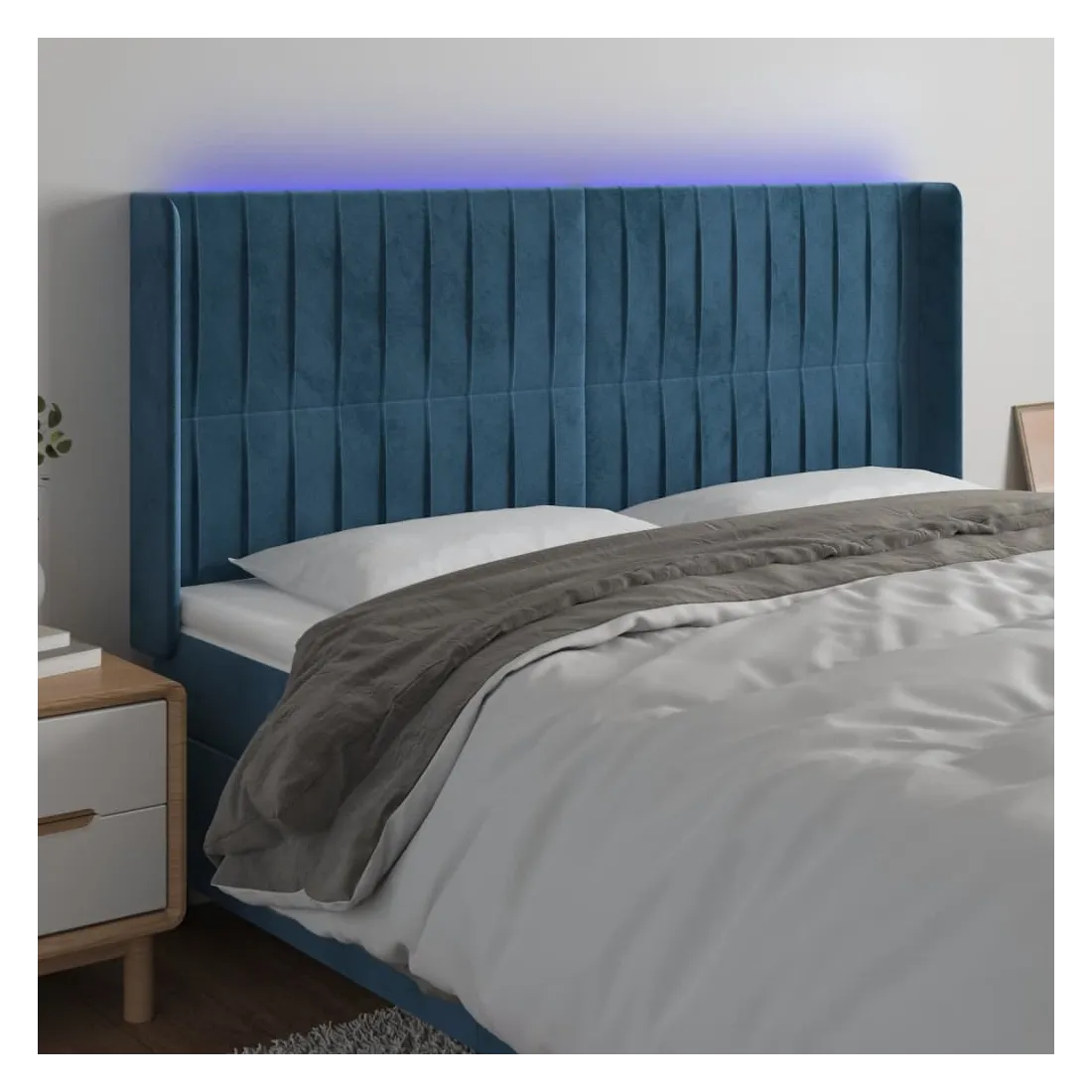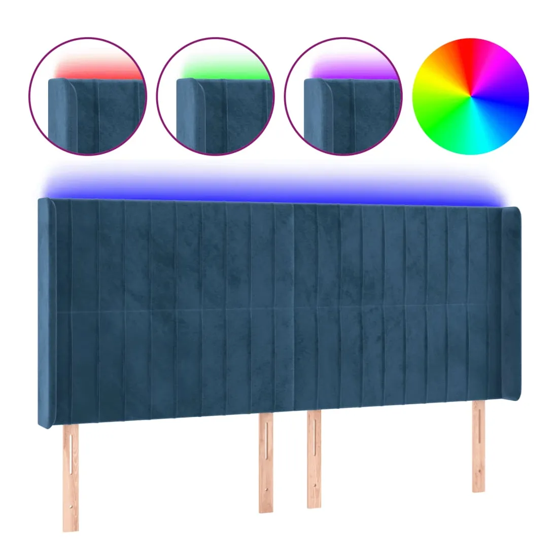 Tête de lit à LED Bleu foncé 163x16x118/128 cm Velours