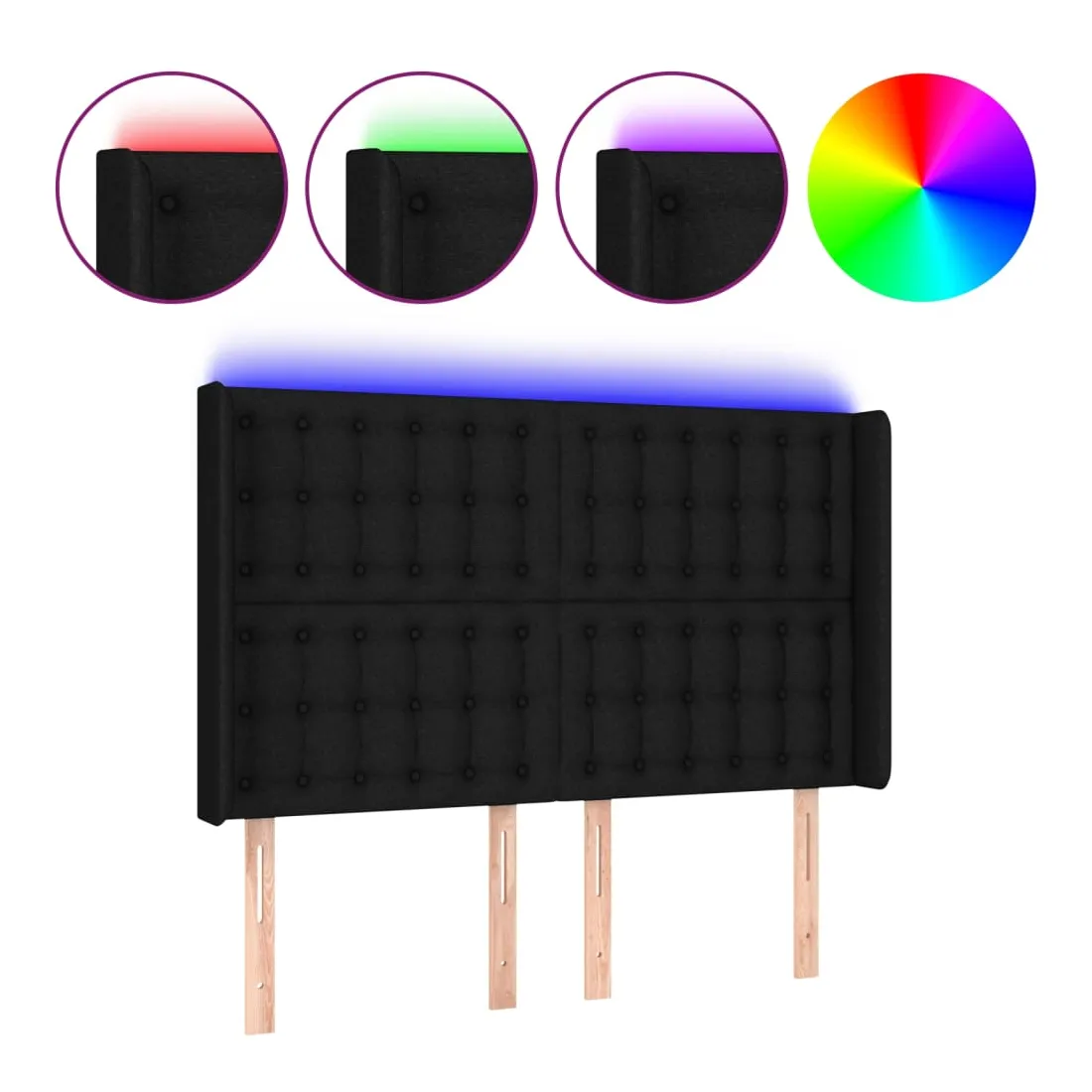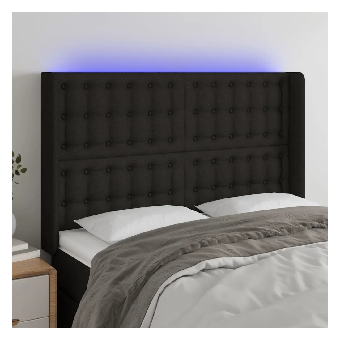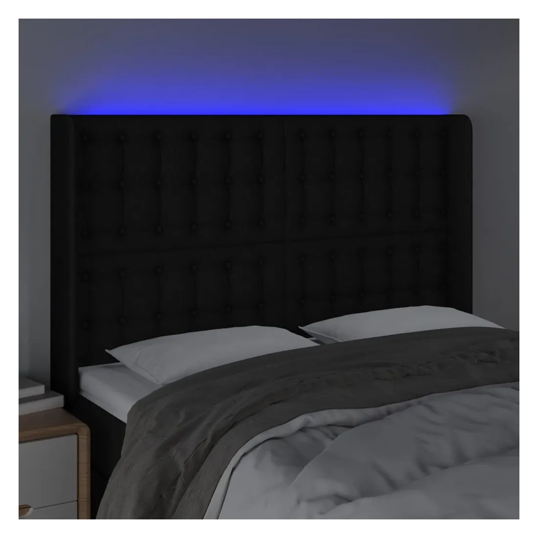 Tête de lit à LED Noir 147x16x118/128 cm Tissu