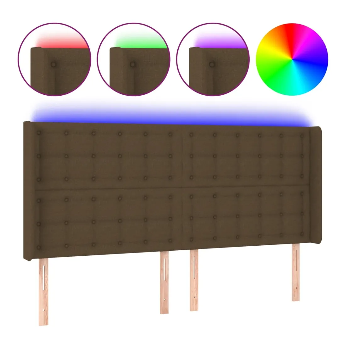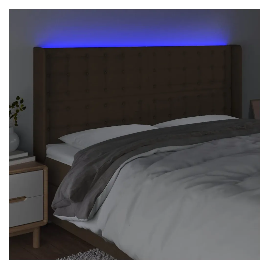 Tête de lit à LED Marron foncé 163x16x118/128 cm Tissu