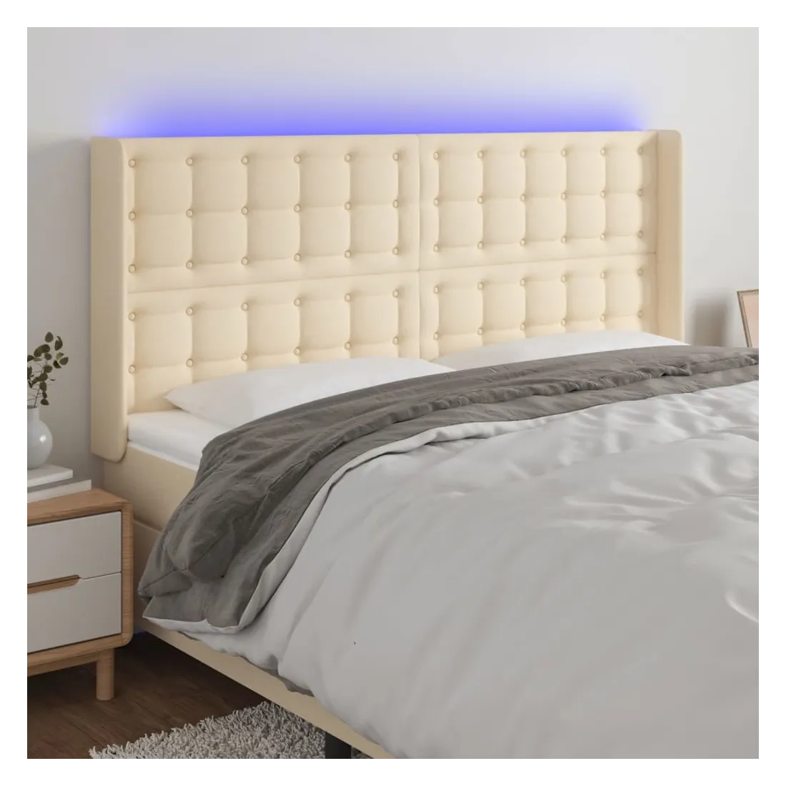 Tête de lit à LED Crème 163x16x118/128 cm Tissu