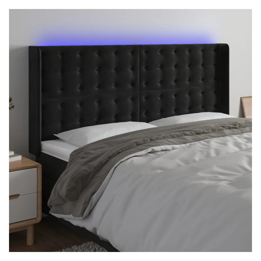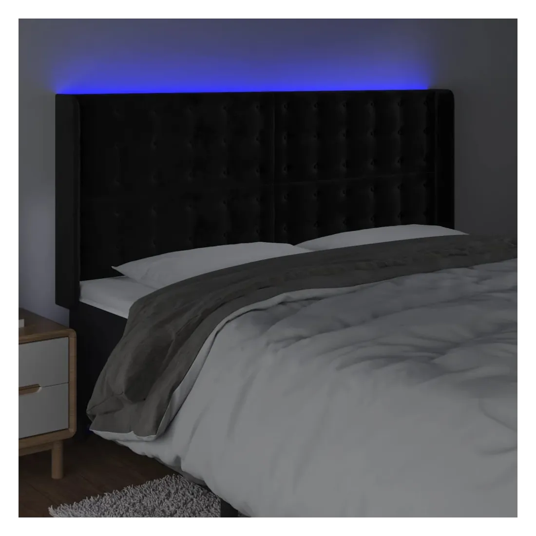 Cette tête de lit à LED classique, au design élégant, donne à votre cadre de lit une touche de modernité étonnante et convient parfaitement à toute chambre à coucher. Velours doux : le velours est un tissu doux et luxueux qui se reconnaît à son tas dense de fibres uniformément coupées qui ont une touche lisse. Le tissu en velours présente un toucher doux distinctif, ce qui le rend confortable au toucher.LED colorée : apportez de l'éclairage dans l'obscurité avec des lumières LED colorées !Hauteur réglable : la tête de lit est réglable en hauteur selon vos préférences.Excellent soutien : la tête de lit vous offre un excellent soutien du dos lorsque vous êtes assis dans votre lit pour lire ou regarder la télévision.Bande à LED découpable : cette bande à LED flexible peut être ajustée en longueur. Le symbole des ciseaux indique où la bande peut être coupée en toute sécurité sans l'endommager. Remarque :Seule la partie avec un symbole de ciseaux peut être coupée et seule la partie avec l'USB continuera à fonctionner comme avant.Chaque produit est livré avec un manuel de montage dans la boîte pour un montage facile.Ce produit est doté d'un connecteur USB, mais la source d'alimentation certifiée de USB 5V n'est pas incluse.