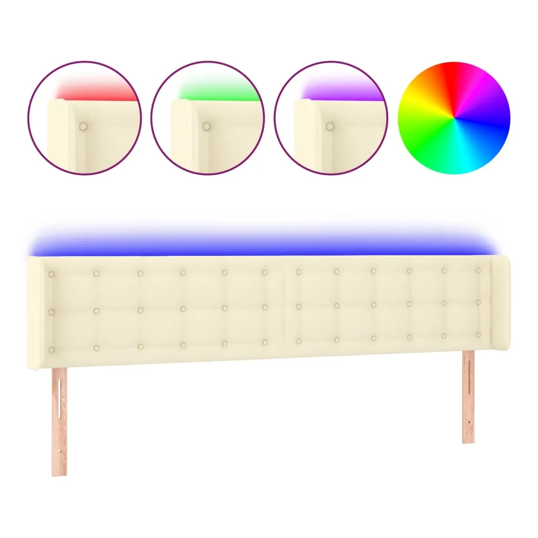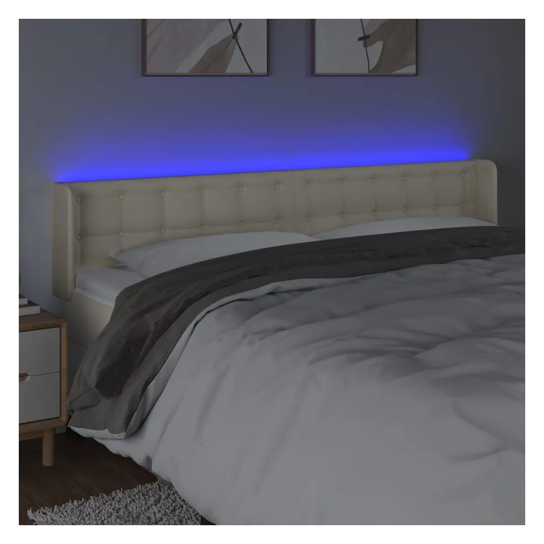 Cette tête de lit à LED classique, au design élégant, donne à votre cadre de lit une touche de modernité étonnante et convient parfaitement à toute chambre à coucher. Similicuir durable : le similicuir de qualité supérieure est un matériau très durable. Il est résistant aux taches, ce qui le rend facile à nettoyer avec un chiffon humide. La surface lisse donne également un aspect luxueux et la beauté du cuir véritable.LED colorée : apportez de l'éclairage dans l'obscurité avec des lumières LED colorées !Hauteur réglable : la tête de lit est réglable en hauteur selon vos préférences.Excellent soutien : la tête de lit vous offre un excellent soutien du dos lorsque vous êtes assis dans votre lit pour lire ou regarder la télévision.Bande à LED découpable : cette bande à LED flexible peut être ajustée en longueur. Le symbole des ciseaux indique où la bande peut être coupée en toute sécurité sans l'endommager. Remarque :Seule la partie avec un symbole de ciseaux peut être coupée et seule la partie avec l'USB continuera à fonctionner comme avant.Chaque produit est livré avec un manuel de montage dans la boîte pour un montage facile.Ce produit est doté d'un connecteur USB, mais la source d'alimentation certifiée de USB 5V n'est pas incluse.