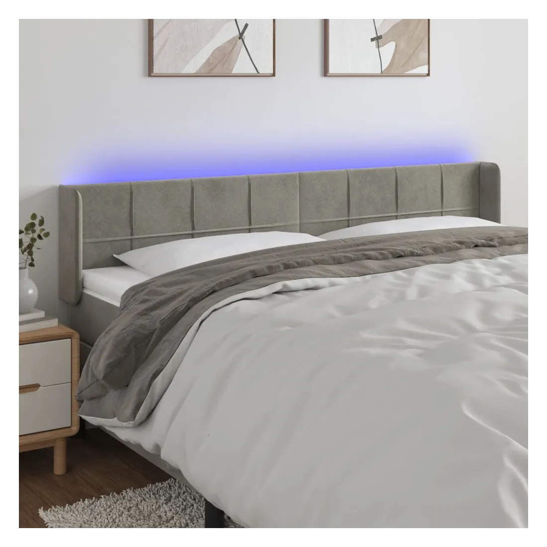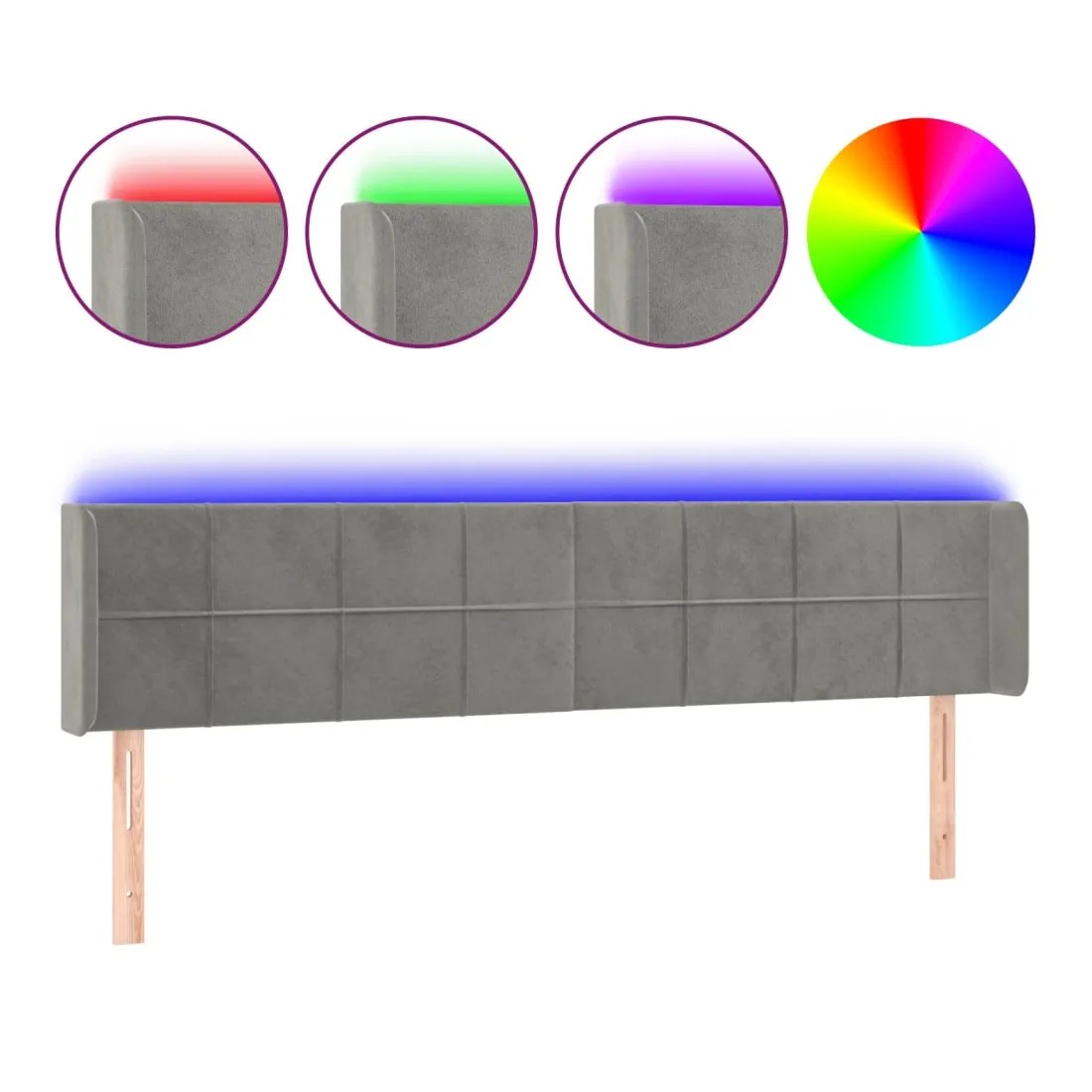 Cette tête de lit à LED classique, au design élégant, donne à votre cadre de lit une touche de modernité étonnante et convient parfaitement à toute chambre à coucher. Velours doux : le velours est un tissu doux et luxueux qui se reconnaît à son tas dense de fibres uniformément coupées qui ont une touche lisse. Le tissu en velours présente un toucher doux distinctif, ce qui le rend confortable au toucher.LED colorée : apportez de l'éclairage dans l'obscurité avec des lumières LED colorées !Hauteur réglable : la tête de lit est réglable en hauteur selon vos préférences.Excellent soutien : la tête de lit vous offre un excellent soutien du dos lorsque vous êtes assis dans votre lit pour lire ou regarder la télévision.Bande à LED découpable : cette bande à LED flexible peut être ajustée en longueur. Le symbole des ciseaux indique où la bande peut être coupée en toute sécurité sans l'endommager. Remarque :Seule la partie avec un symbole de ciseaux peut être coupée et seule la partie avec l'USB continuera à fonctionner comme avant.Chaque produit est livré avec un manuel de montage dans la boîte pour un montage facile.Ce produit est doté d'un connecteur USB, mais la source d'alimentation certifiée de USB 5V n'est pas incluse.