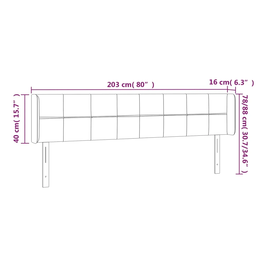 - 203 x 16 x 78/88 cm
