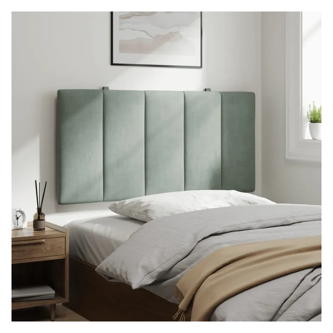 Ce coussin de tête au design élégant confère à votre cadre de lit un aspect complet et convient à toute chambre à coucher. Velours doux : le velours est un tissu doux et confortable, agréable au toucher. Excellent soutien : l'oreiller de tête de lit est rembourré avec de la mousse pour un confort ultra doux et optimal vous offre un excellent soutien du dos lorsque vous êtes assis dans votre lit pour lire ou regarder la télévision. Design pratique : le coussin de la tête de lit est doté d'une fermeture à glissière pour faciliter l'installation, et les bandes auto-agrippantes au dos peuvent être utilisées pour fixer les lampes LED. Installation polyvalente : le coussin de tête de lit peut être accroché au mur avec les sangles incluses pour s'adapter à n'importe quel style de lit. Vous pouvez également l'utiliser avec une tête de lit du cadre de lit incurvé dans notre boutique, il suffit d'enlever la housse en tissu d'origine de la tête de lit, et de la recouvrir avec ce coussin de tête, et vous aurez alors une tête de lit confortable ! Beauté classique : le design linéaire ajoute à la beauté classique de la tête de lit rembourrée. Bon à savoir :La livraison comprend uniquement le coussin de tête. Le cadre de lit et le matelas ne sont pas inclus. Vous pouvez consulter notre boutique pour les cadres et matelas assortis.