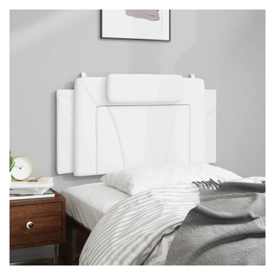Ce coussin de tête au design élégant confère à votre cadre de lit un aspect complet et convient à toute chambre à coucher. Similicuir durable : le similicuir de qualité supérieure est un matériau très durable. Il est résistant aux taches, ce qui le rend facile à nettoyer avec un chiffon humide. La surface lisse donne également un aspect luxueux et la beauté du cuir véritable. Excellent soutien : l'oreiller de tête de lit est rembourré avec de la mousse pour un confort ultra doux et optimal vous offre un excellent soutien du dos lorsque vous êtes assis dans votre lit pour lire ou regarder la télévision. Design pratique : le coussin de la tête de lit est doté d'une fermeture à glissière pour faciliter l'installation, et les bandes auto-agrippantes au dos peuvent être utilisées pour fixer les lampes LED. Installation polyvalente : le coussin de tête de lit peut être accroché au mur avec les sangles incluses pour s'adapter à n'importe quel style de lit. Vous pouvez également l'utiliser avec une tête de lit du cadre de lit incurvé dans notre boutique, il suffit d'enlever la housse en tissu d'origine de la tête de lit, et de la recouvrir avec ce coussin de tête, et vous aurez alors une tête de lit confortable ! Beauté classique : le design du mini oreiller ajoute à la praticité et à la beauté classique de la tête de lit rembourrée. Bon à savoir :La livraison comprend uniquement le coussin de tête. Le cadre de lit et le matelas ne sont pas inclus. Vous pouvez consulter notre boutique pour les cadres et matelas assortis.