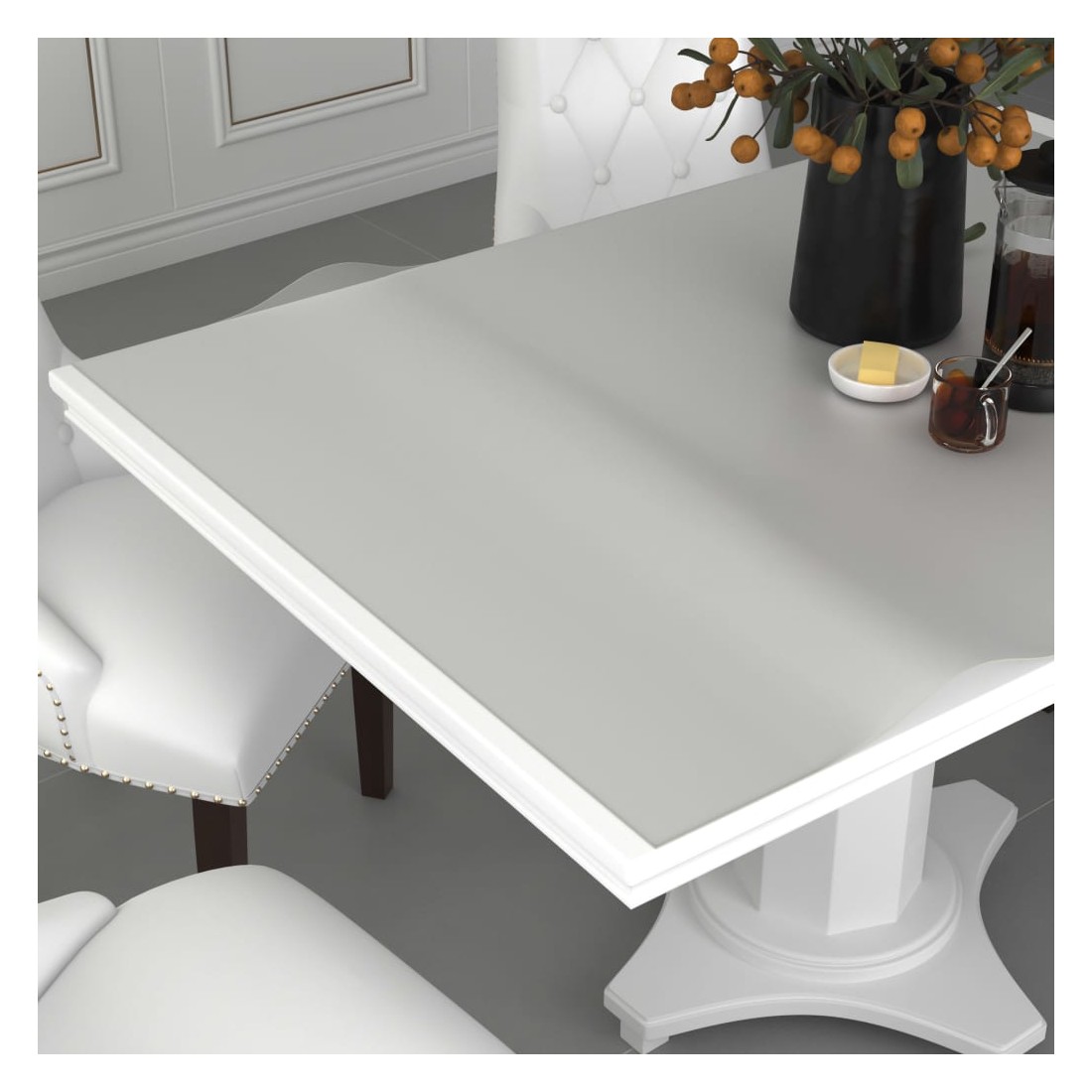 Ce protecteur de table rectangulaire, d'une épaisseur de 2 mm, convient aux tables et aux sols à l'intérieur de la salle à manger, du salon, de la terrasse ou au bureau pour garder vos meubles propres et protégés. Le film de protection des meubles est en PVC. Le PVC est étanche et imperméable aux huiles et autres liquides. Ce film protecteur est donc facile à nettoyer et à entretenir. Il y a une tolérance de 1-2 cm sur les bords. Par conséquent, il est facile et pratique de couper le film dans la forme que vous souhaitez car il est en PVC souple.