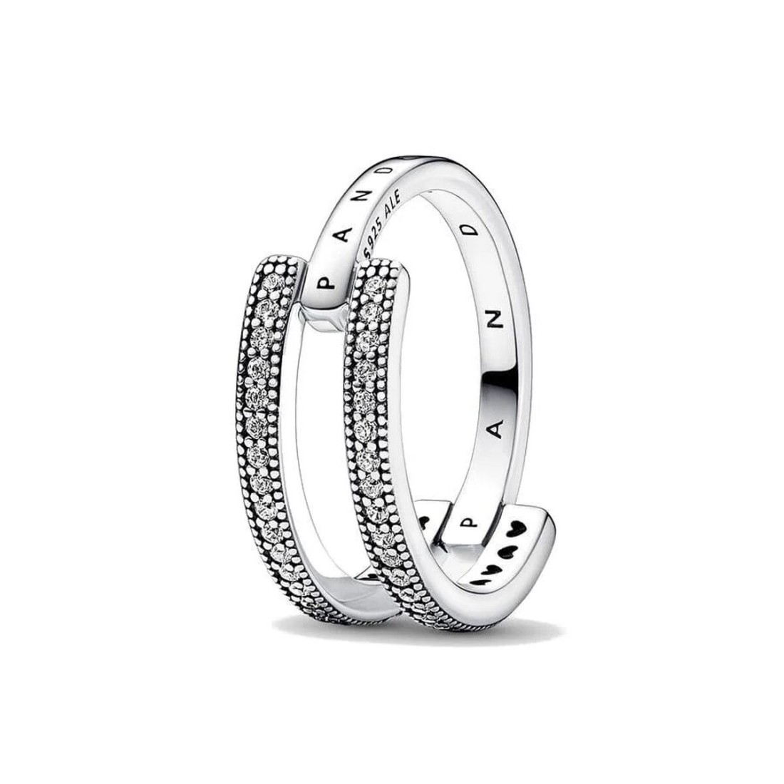 Anello Donna Pandora SIGNATURE LOGO & PAVE DOUBLE BAND - RING - SIZE 52