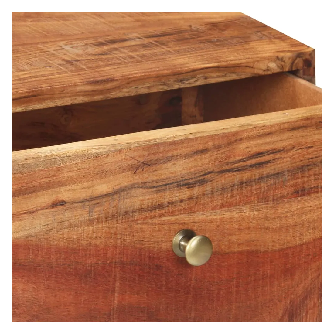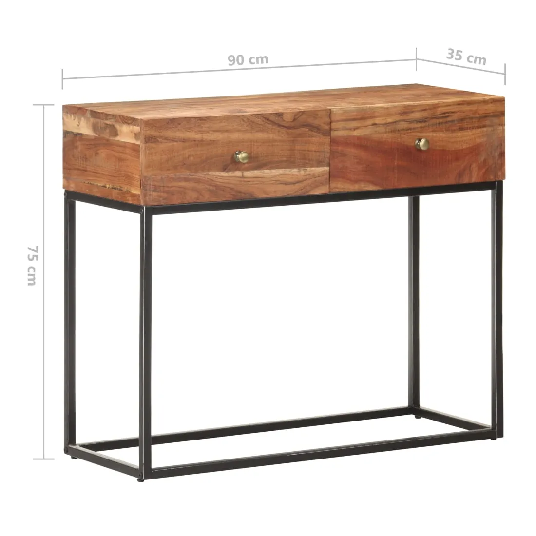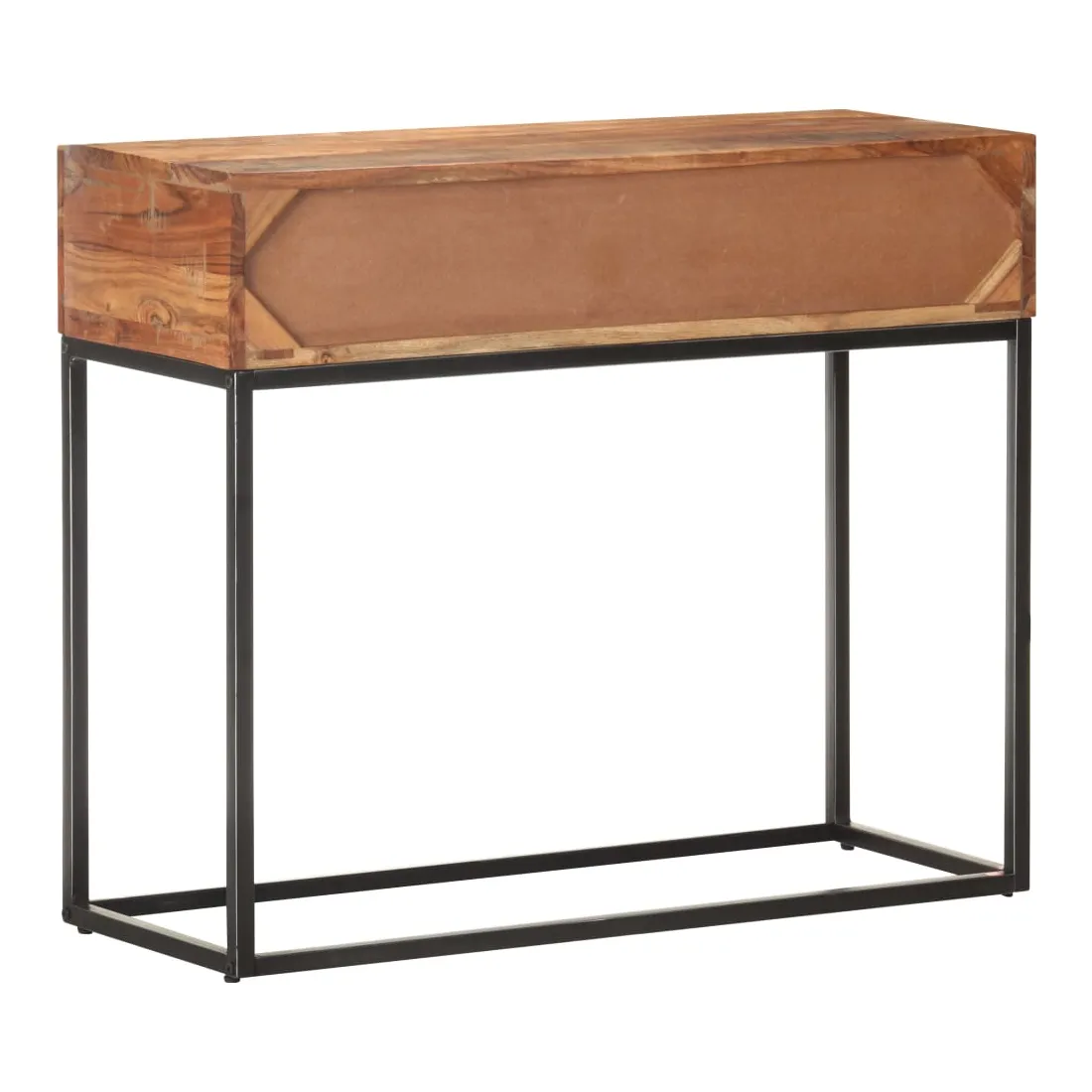 Introduisez un air de charme industriel dans votre décoration intérieure avec cette élégante table console en bois ! Cette armoire de couloir est fabriquée en bois d'acacia brut massif, ce qui la rend robuste et stable. Le savoir-faire artisanal et les belles veines du bois rendent chaque meuble unique et légèrement différent l'un de l'autre. La table console est équipée de 2 tiroirs, offrant amplement d’espace pour garder tous les articles que vous souhaitez bien organisés. De plus, la base en fer ajoute à sa robustesse. Remarque importante : les veines et les couleurs du bois varient d’une pièce à l’autre, ce qui rend chaque meuble sous miroir unique.