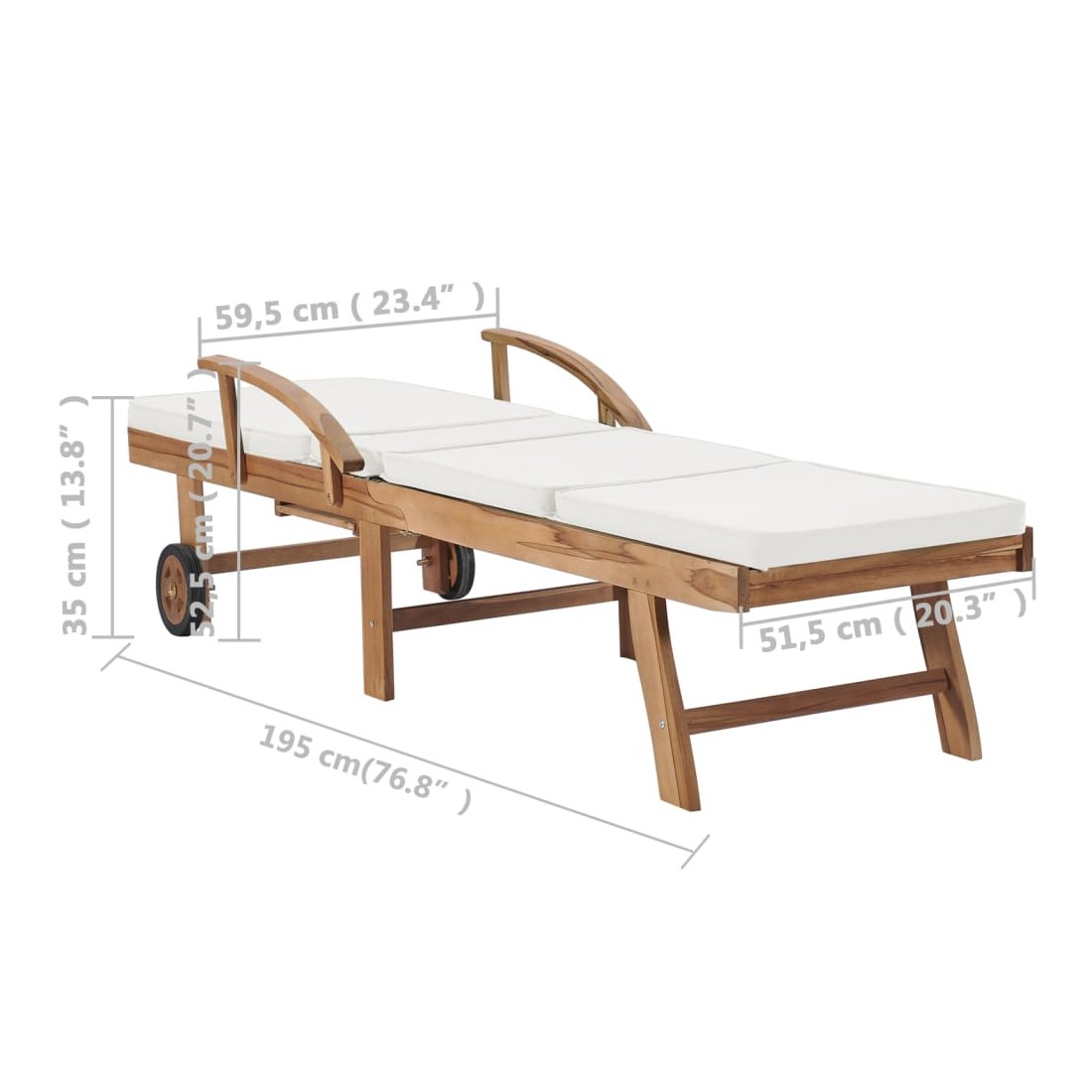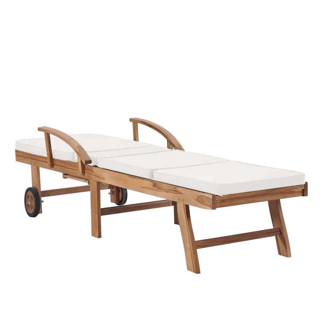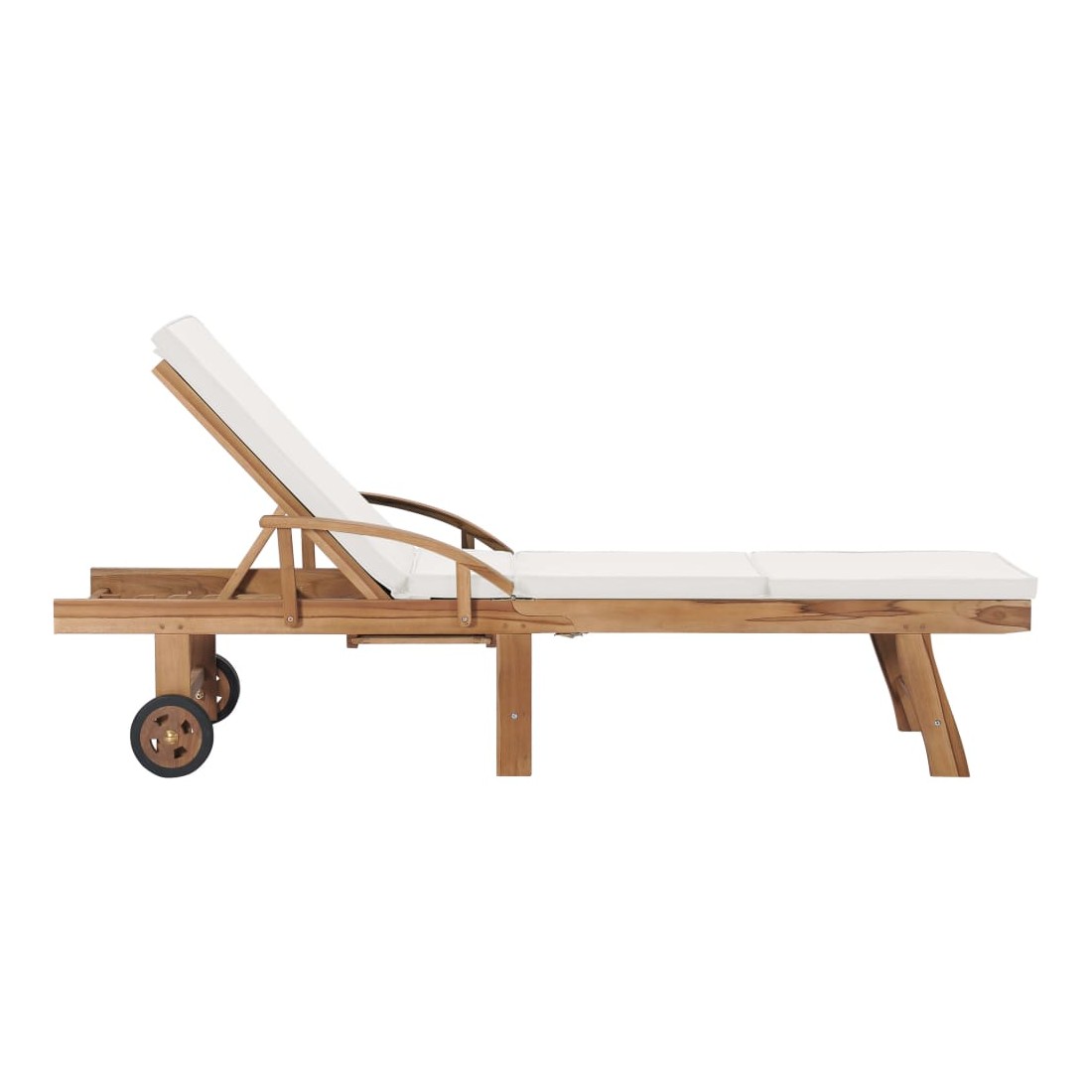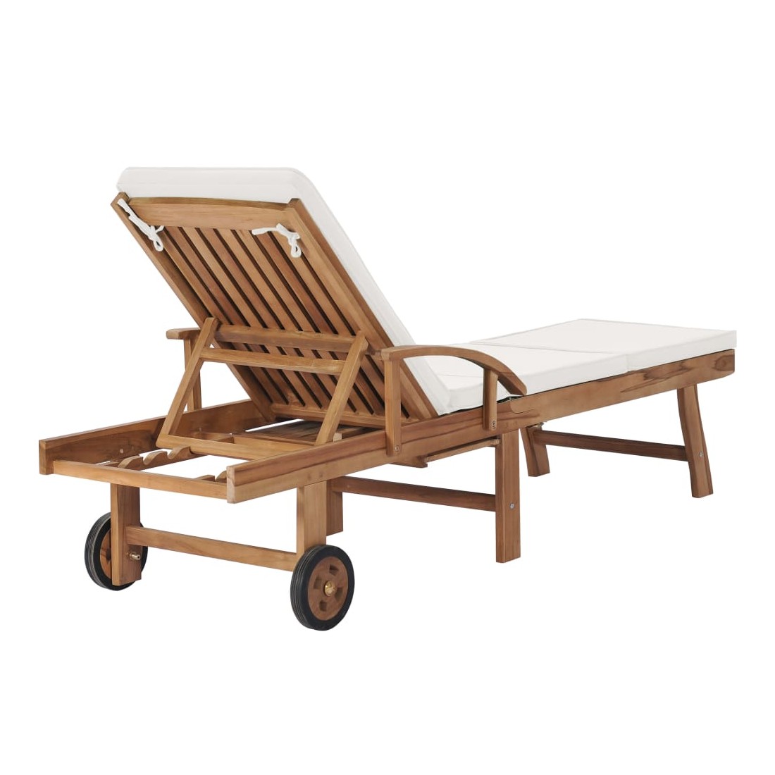 Ces 2 chaises longues en bois de teck ont une conception attrayante et ajouteront une touche de charme rustique à votre jardin, terrasse ou autre espace extérieur. Fabriquée en bois dur de teck extrêmement durable, cette pièce de meuble en teck a été chevronnée, séchée au four puis finement poncée pour lui donner un aspect très lisse. Le bois de teck est connu pour sa résistance exceptionnelle aux intempéries, ce qui le rend bien plus adapté aux meubles de jardin que tout autre type de bois. Le bois de teck est le choix idéal si vous souhaitez acheter une pièce de meubles de jardin durable. Les produits sont appliqués avec une belle finition pour donner au bois une couleur chaude. Les chaises longues sont équipées de 2 roulettes pour pouvoir les déplacer facilement. Les coussins inclus rendent les transats encore plus confortables. Ils disposent des tables coulissantes pratiques sur lesquelles vous pouvez garder votre téléphone, vos lunettes de soleil, vos boissons et autres petits objets à portée de main. Leurs dossiers peuvent être ajustés dans 3 positions, de la verticale à l'horizontale. Les repose-pieds sont également réglables. Détendez-vous et profitez du soleil sur ces chaises longues confortables !