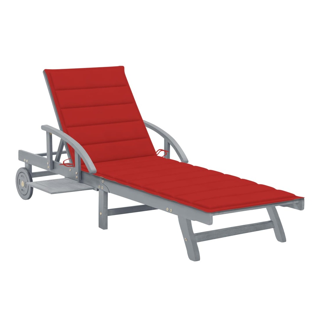 Détendez-vous et reposez-vous dans votre jardin ou patio sur cette confortable chaise longue en bois ! Vous pouvez passer un après-midi de détente dans votre propre espace extérieur. Elle est parfaite pour une piscine, balcon, jardin, etc. Cette chaise longue d'extérieur est fabriquée en bois d’acacia massif avec une finition de couleur grise, ce qui la rend robuste et stable. Le dossier et le repose-pied sont réglables, et vous pouvez verrouiller la chaise longue dans la position souhaitée. Cette chaise longue de jardin peut être facilement déplacée autour de la maison avec 2 roues équipées. Le transat dispose d’une table coulissante pratique, pour placer votre téléphone, lunettes de soleil, boisson et autres petits articles. Le coussin ajoute un confort supplémentaire pendant que vous vous prélassez. Chaque coussin comprend deux jeux de cordes pour que vous puissiez le fixer solidement sur la chaise longue.