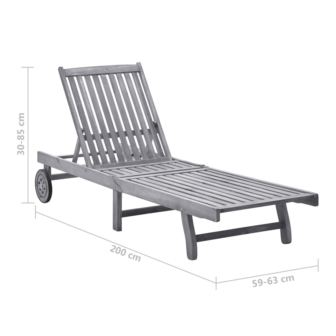 Chaise longue de jardin avec coussin Gris Bois d'acacia solide