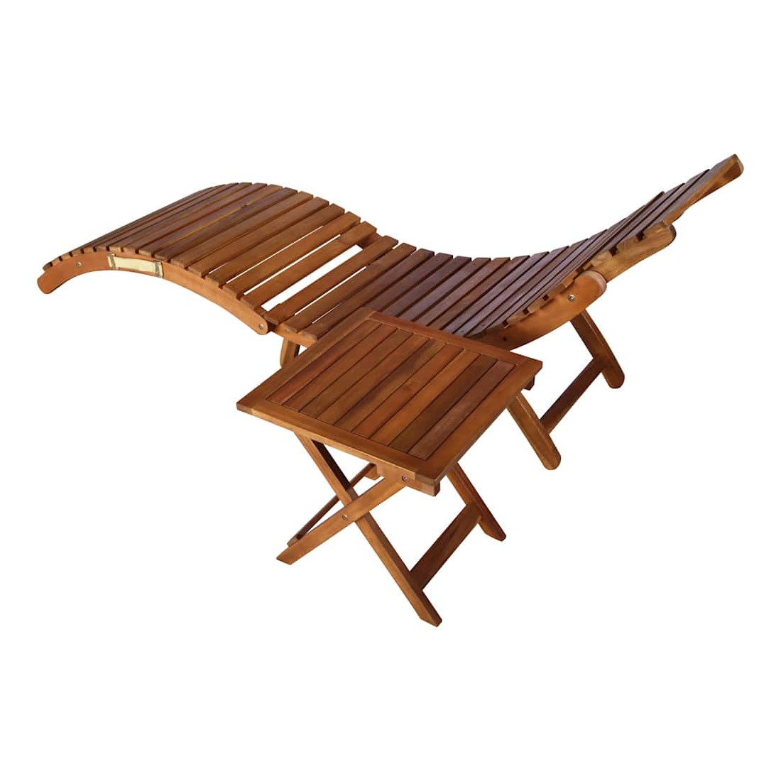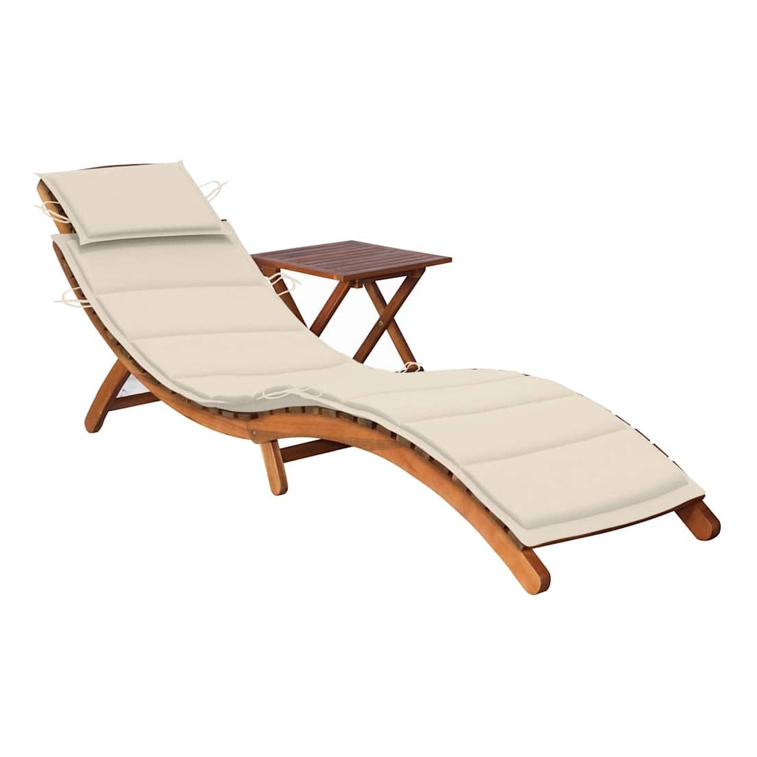 vidaXLDétendez-vous et reposez-vous dans votre jardin ou sur votre patio sur cette confortable chaise longue en bois ! Vous pouvez passer un après-midi de détente dans votre propre espace extérieur ! Elle est parfaite pour une piscine, un balcon, un jardin, etc. La chaise longue et la table d'extérieur sont fabriquées en bois d’acacia massif, ce qui les rend robustes et stables. Ce lit de repos présente une forme incurvée ergonomique, vous permettant de vous allonger et de vous détendre pleinement. Le transat et la table peuvent être repliés lorsqu'ils ne sont pas utilisés. Le coussin avec appui-tête ajoute un confort supplémentaire pendant que vous vous prélassez. Chaque coussin comprend six ensembles de cordes pour que vous puissiez le fixer fermement sur la chaise longue.