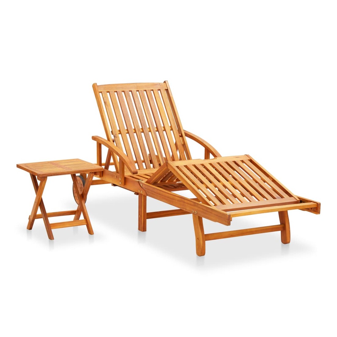Chaise longue de jardin avec table et coussin Bois d'acacia