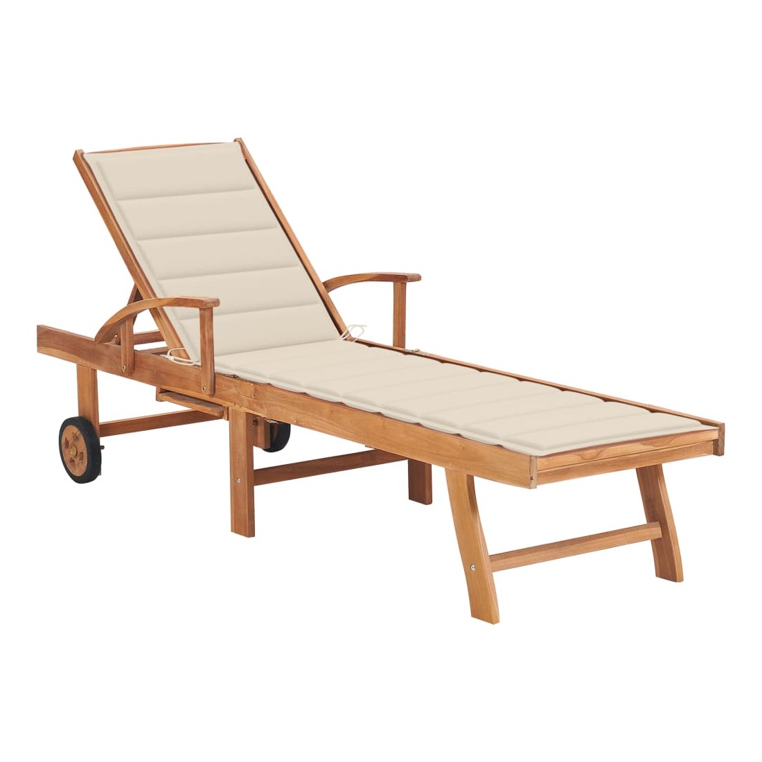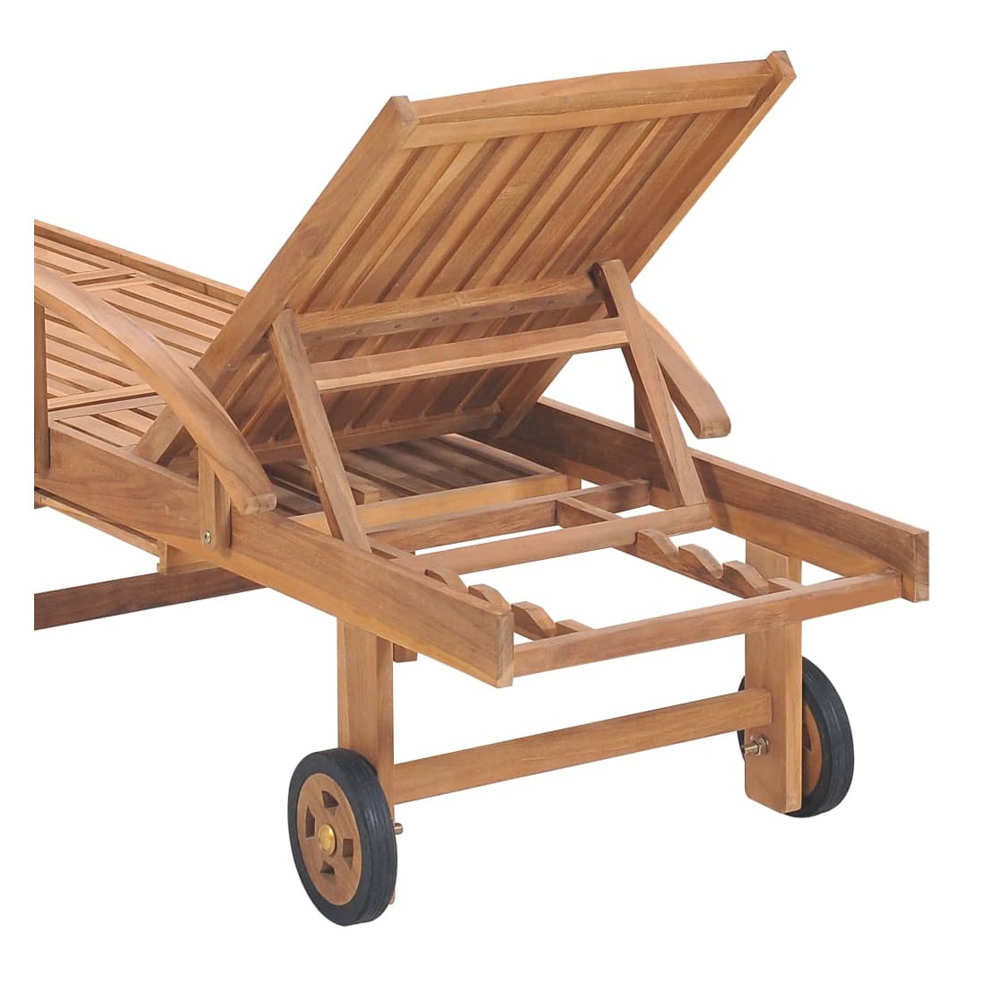 Cette chaise longue classique en bois avec un design à lattes attrayant, ajoute une touche de charme rustique à votre jardin, patio, terrasse de la piscine ou tout espace extérieur. Fabriquée en bois dur de teck extrêmement durable, cette pièce de meuble en teck a été chevronnée, séchée au four puis finement poncée pour lui donner un aspect très lisse. Le bois de teck est connu pour sa résistance exceptionnelle aux intempéries, ce qui le rend bien plus adapté aux meubles de jardin que tout autre type de bois. Le bois de teck est le choix idéal si vous souhaitez acheter une pièce de meubles de jardin durable. Le lit de repos est équipé de 2 roues, pour le déplacer facilement. Le dossier peut être ajusté dans 4 positions, de la position assise entièrement droite à la position complètement à plat. Les lattes du siège et du dossier offrent également un excellent soutien et un grand confort et deux accoudoirs offrent un endroit pour reposer vos bras. De plus, le coussin inclus est plus qu'un supplément pratique ; il a également une fonction décorative. Remarque : afin de prolonger la durée de vie des meubles d'extérieur, nous vous recommandons de les protéger avec une housse imperméable.