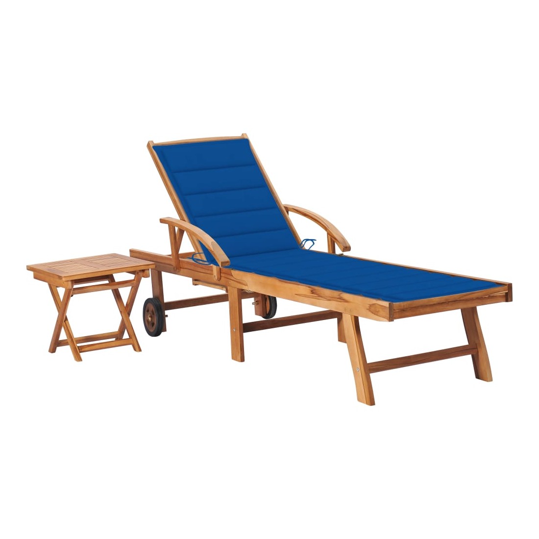 Avec cette chaise longue en bois, vous aurez toujours un endroit confortable pour vous détendre sur votre terrasse ou dans votre jardin. La structure en bois unique dégage un charme naturel. Fabriquée en bois dur de teck extrêmement durable, cette pièce de meuble en teck a été chevronnée, séchée au four puis finement poncée pour lui donner un aspect très lisse. Le bois de teck est connu pour sa résistance exceptionnelle aux intempéries, ce qui le rend bien plus adapté aux meubles de jardin que tout autre type de bois. Le bois de teck est le choix idéal si vous souhaitez acheter une pièce de meubles de jardin durable. Équipée de 2 roues, la chaise longue d'extérieur peut être déplacée facilement. Le dossier peut être réglable en 3 positions, de la position assise entièrement droite à la position complètement à plat. Le marchepied est également réglable pour plus de confort. Les lattes du siège et du dossier offrent également un excellent soutien et un grand confort, et deux accoudoirs offrent un endroit pour reposer vos bras. De plus, la table d'appoint vous permet de placer vos téléphones, lunettes de soleil, boissons, ainsi que d'autres petits objets à portée de main. Le coussin inclus est plus qu'un supplément pratique ; il a également une fonction décorative. Remarque : afin de prolonger la durée de vie des meubles d'extérieur, nous vous recommandons de les protéger avec une housse imperméable.