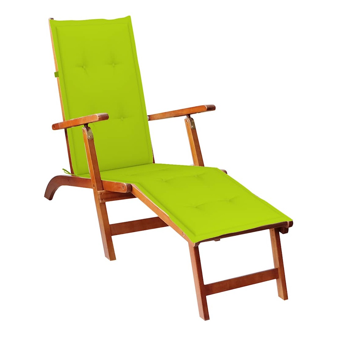 Chaise longue d'extérieur repose-pied et coussin Acacia solide
