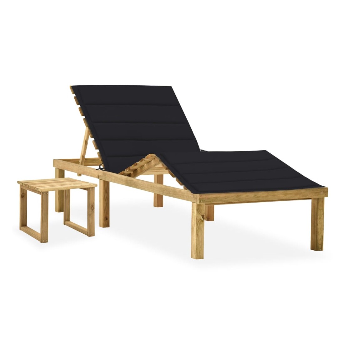 Chaise longue de jardin avec table et coussin Pin imprégné