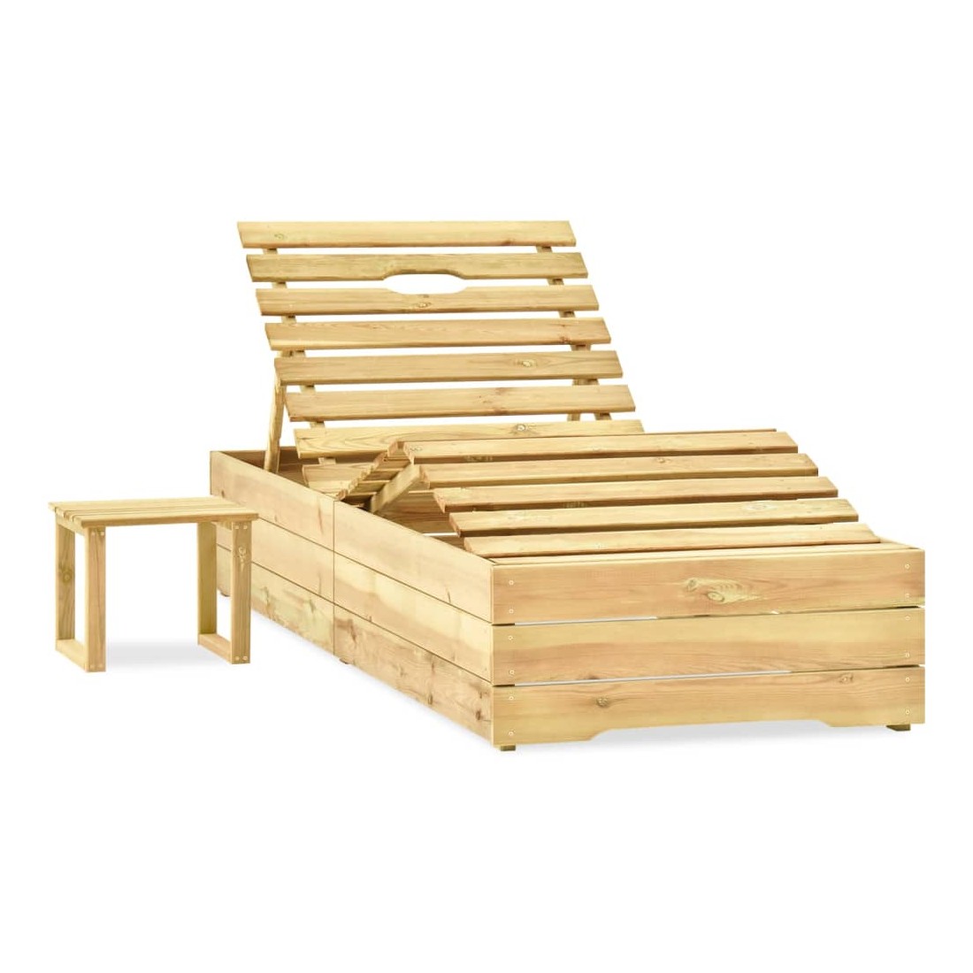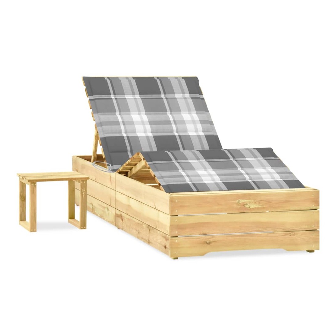 Chaise longue de jardin avec table et coussin Pin imprégné