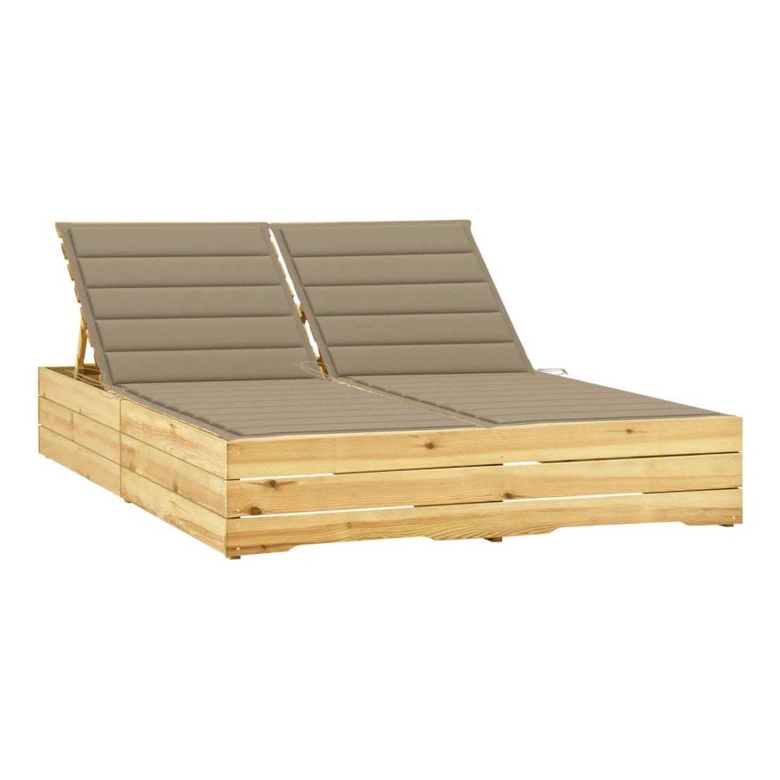 Cette chaise longue double en bois avec coussin combine style et fonctionnalité et ajoute une touche de charme rustique à votre espace de vie extérieur. Fabriqué en bois de pin imprégné, le transat pour 2 personnes est résistant aux intempéries, très durable et facile à nettoyer avec un chiffon humide. Le dossier est réglable afin que vous puissiez trouver la position la plus confortable. De plus, le coussin inclus est plus qu’un supplément pratique ; il a également une fonction décorative. Remarque : afin de prolonger la durée de vie des meubles d'extérieur, nous vous recommandons de les protéger avec une housse imperméable.