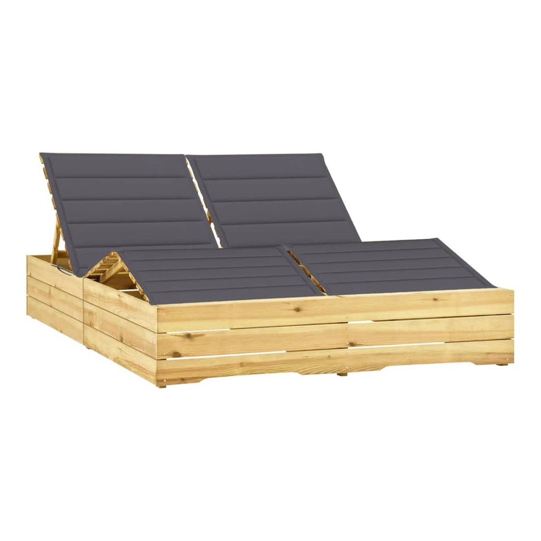 Chaise longue double avec coussins anthracite Pin imprégné