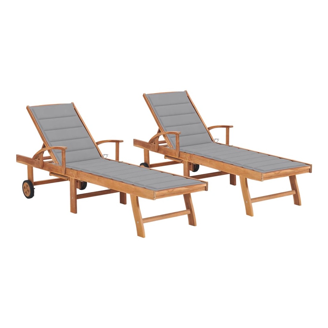 Chaises longues lot de 2 avec coussin gris Bois de teck solide