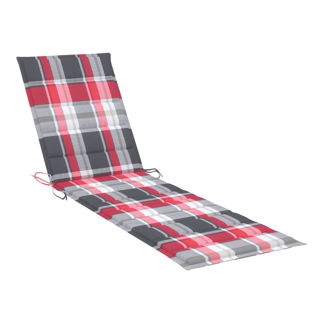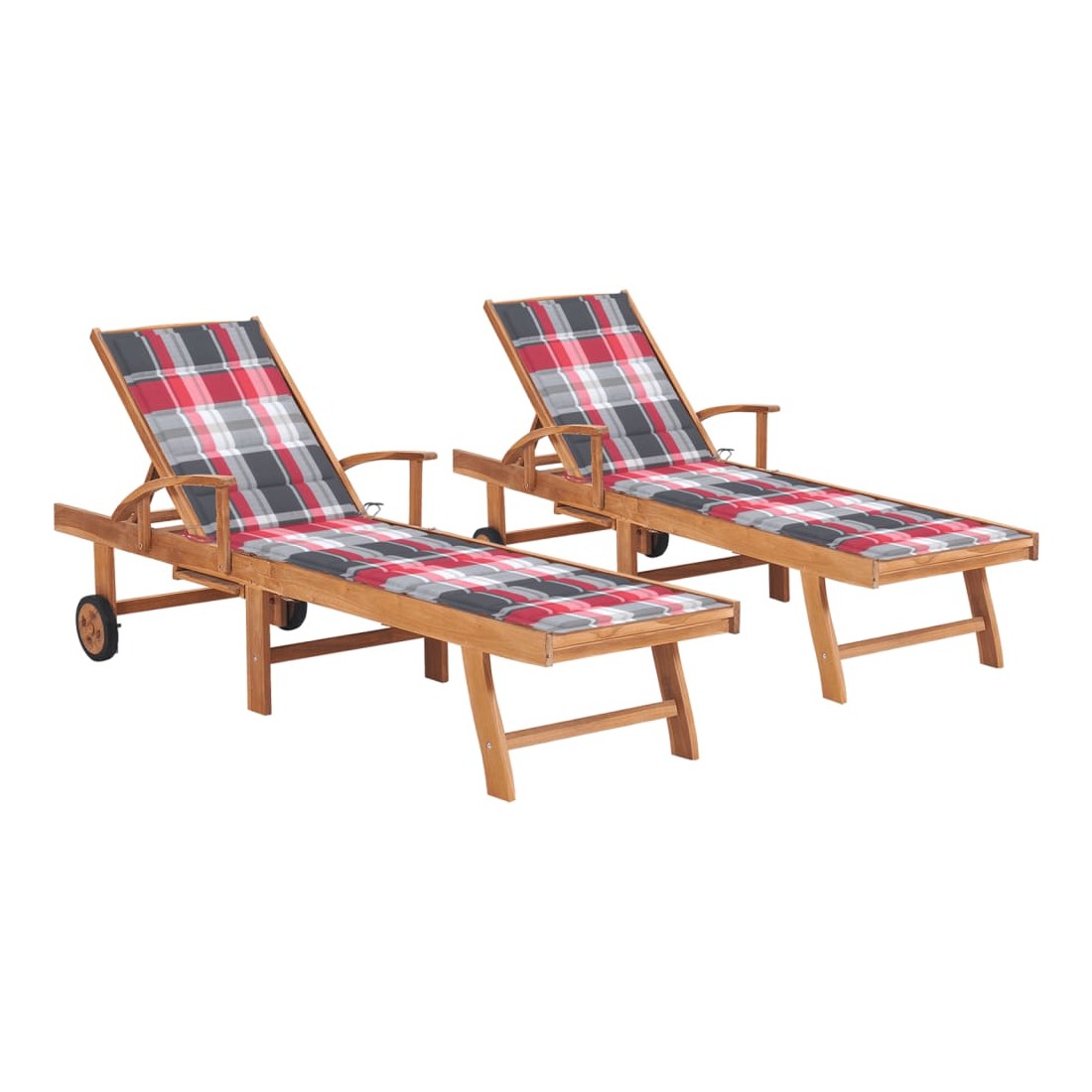 Chaises longues lot de 2 et coussin carreaux rouge Teck solide