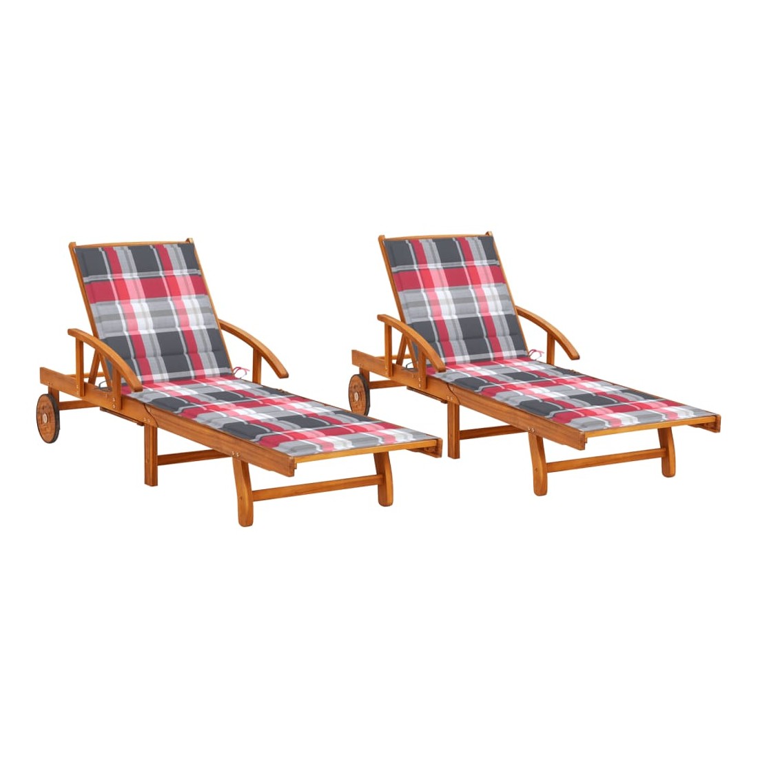 Cet ensemble de chaises longues en bois allie style et fonctionnalité et ajoutera une touche de charme rustique à votre jardin, terrasse, terrasse de piscine ou autre espace de vie extérieur. Construite en bois d’acacia massif, la chaise longue est résistante aux intempéries, durable et convient à un usage extérieur. Équipée de roues, elle peut être facilement déplacée. Le dossier et le repose-pied sont réglables de la position complètement verticale à la position complètement à plat, ce qui vous offre le plus grand confort. Le lit de jour peut être replié lorsqu'il n'est pas utilisé. Le coussin inclus est plus qu’un supplément pratique; il a également une fonction décorative. Remarque : afin de prolonger la durée de vie des meubles d'extérieur, nous vous recommandons de les protéger avec une housse imperméable.