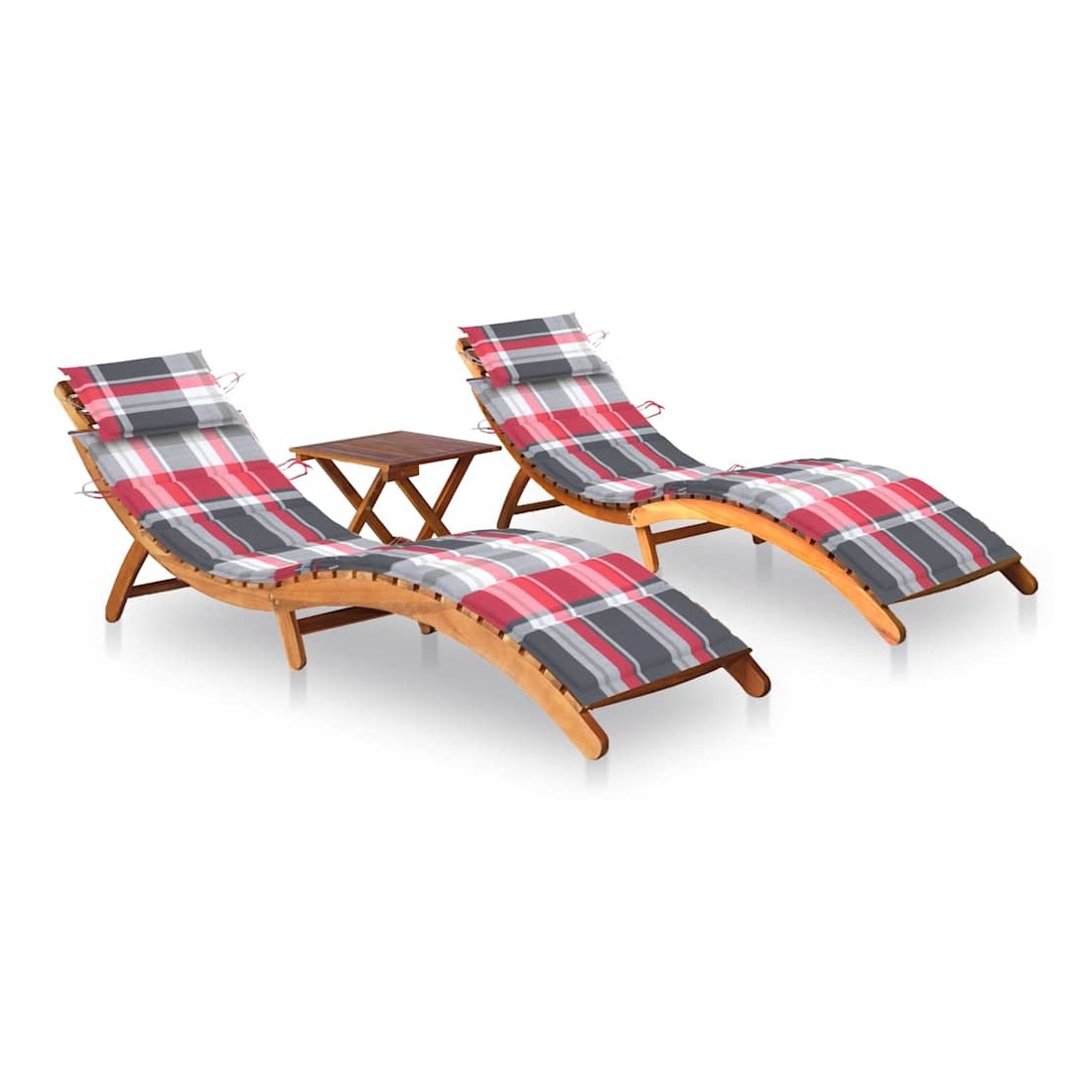 Chaises longues lot de 2 avec table et coussins Acacia solide