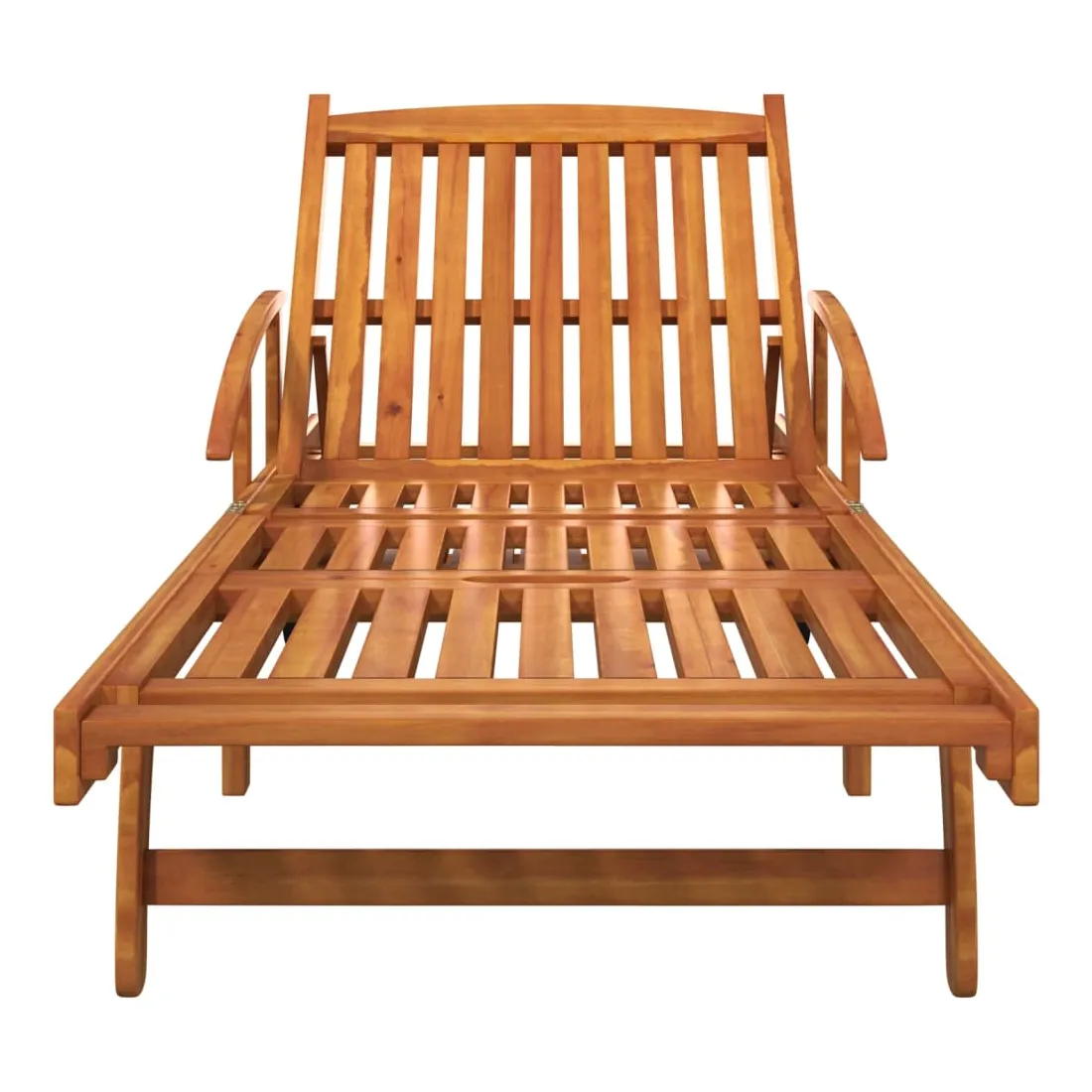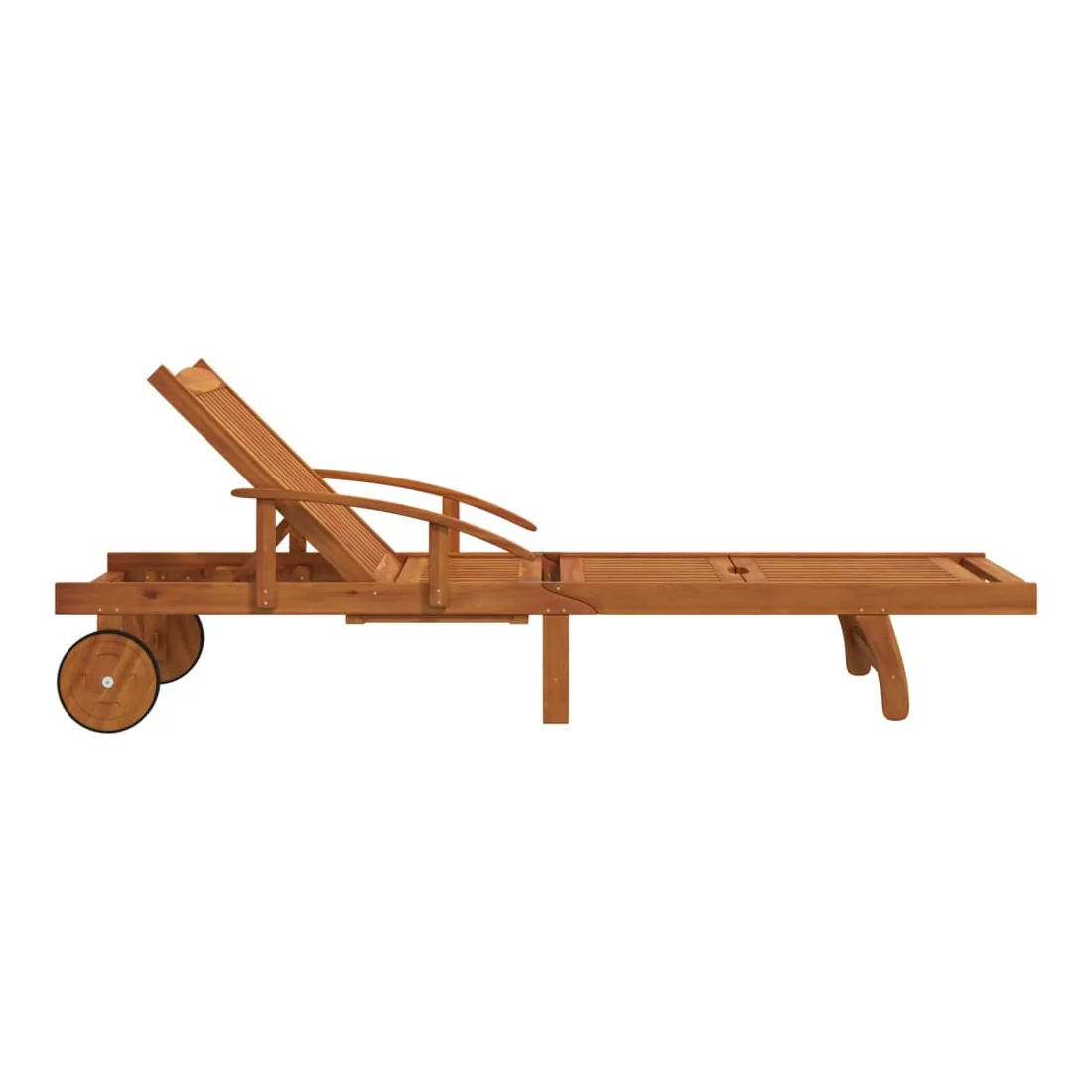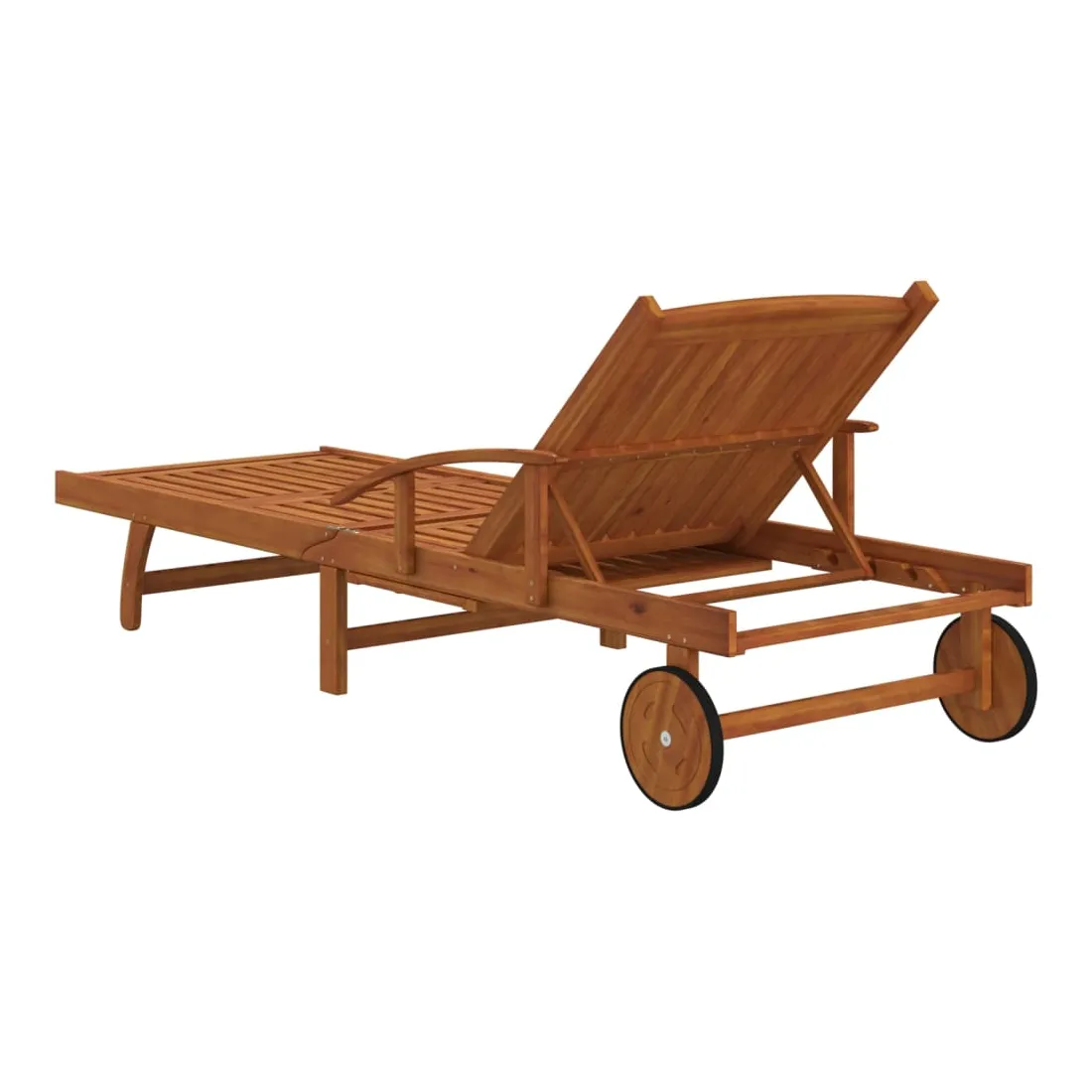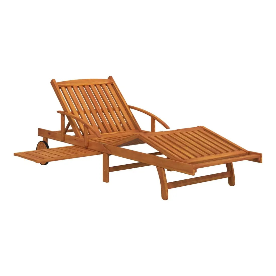 Cet ensemble de chaises longues en bois avec table présente un design unique et attrayant et est un excellent supplément à votre jardin, patio ou terrasse. Robuste et stable : le bois massif d'acacia est connu pour sa solidité et sa durabilité. Ses couleurs variées et ses grains uniques lui confèrent un aspect attrayant. Avec une excellente stabilité et résistance aux intempéries, il est idéal pour la fabrication de mobilier d'intérieur et d'extérieur.Expérience d’assise confortable : les lattes de siège et de dossier offrent également un excellent soutien et confort, et deux accoudoirs offrent un endroit pour reposer vos bras.Dossier et repose-pieds réglables : le dossier peut être ajusté dans 5 positions, de la position complètement verticale à la position complètement à plat. Le repose-pied est également réglable.Table pratique : cette chaise longue dispose d'une table coulissante pratique sur laquelle vous pouvez mettre vos téléphones, lunettes de soleil, boissons et autres petits objets.Roues pratiques : équipée de 2 roues, elle peut être déplacée facilement. Bon à savoir :Pour que vos meubles d'extérieur restent beaux, nous vous recommandons de les protéger avec une housse imperméable.