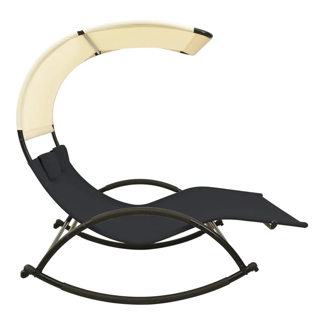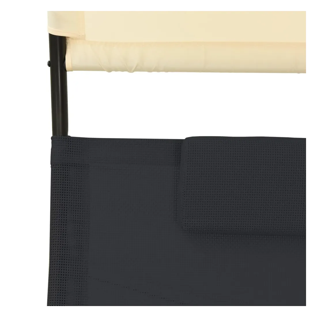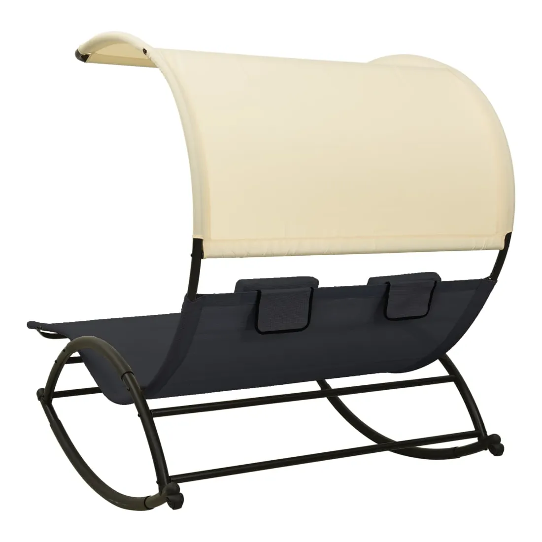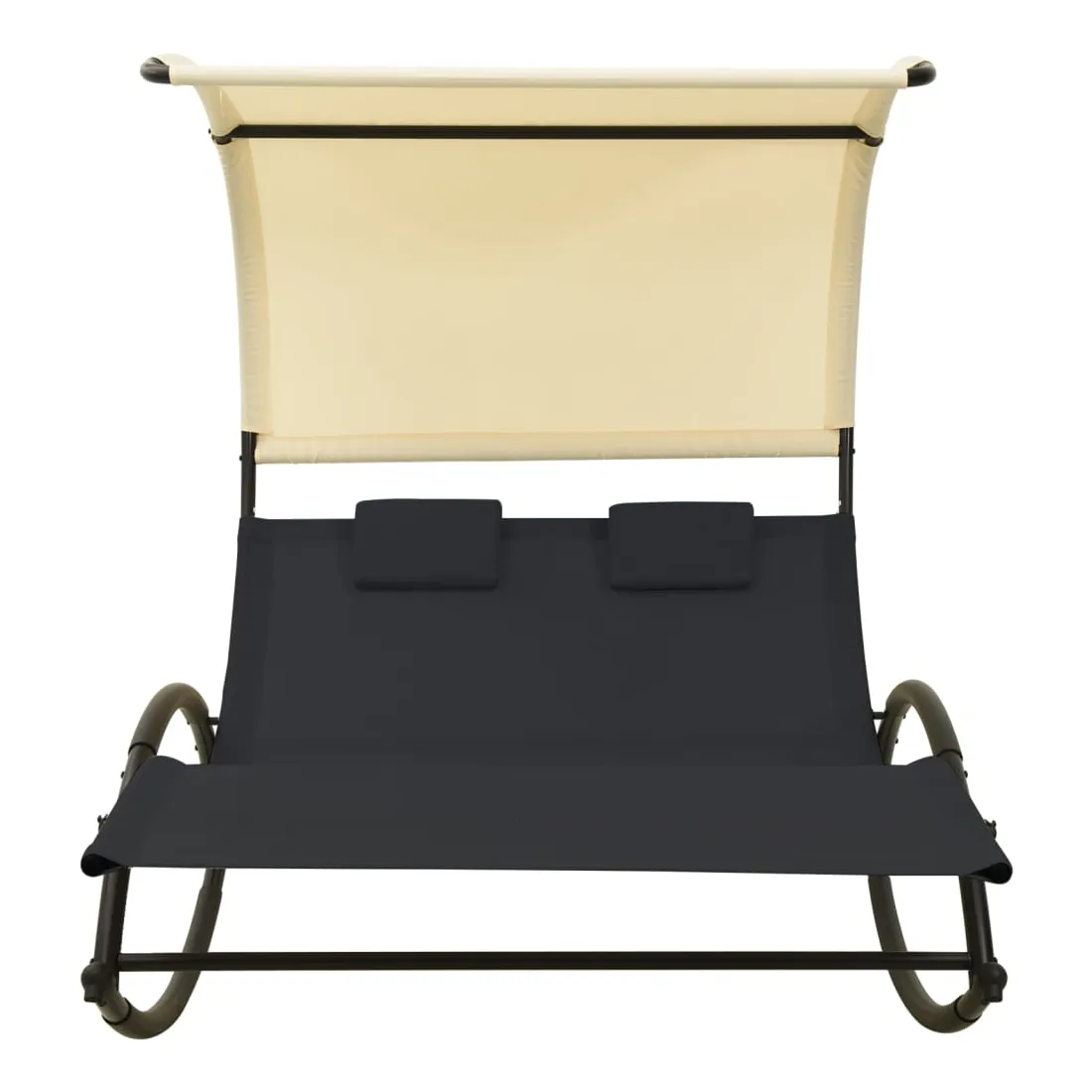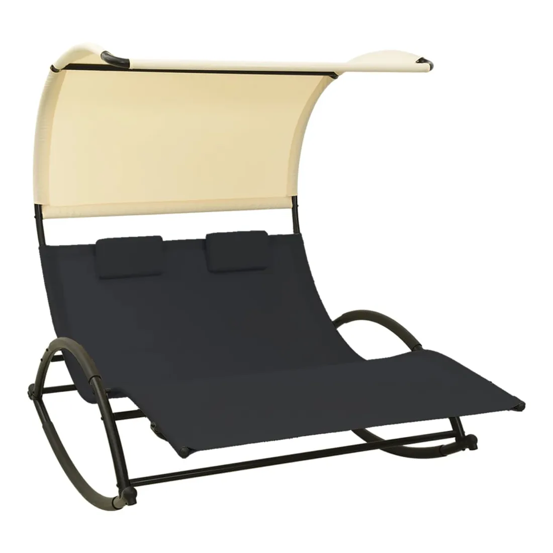 Chaise longue double avec auvent textilène noir et crème