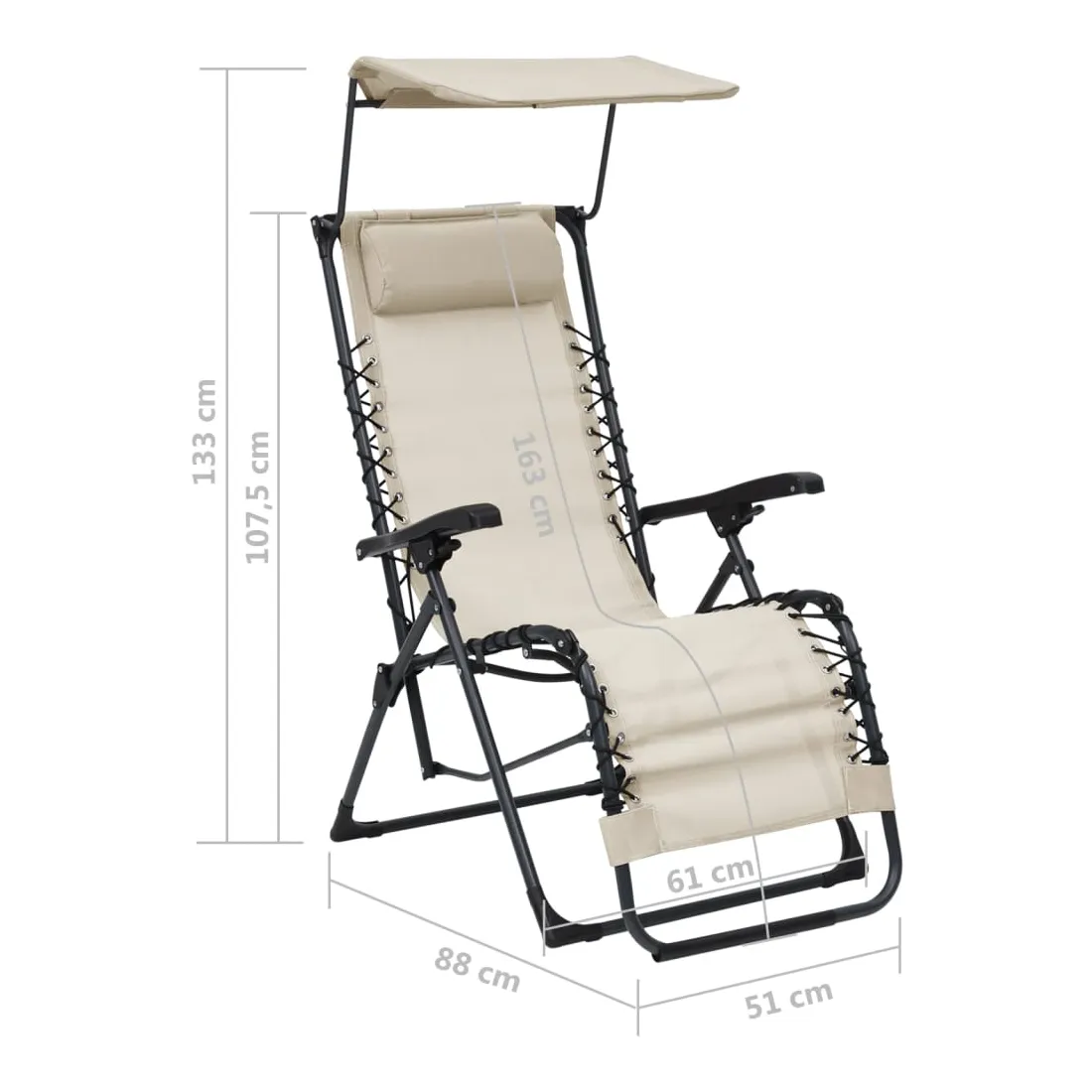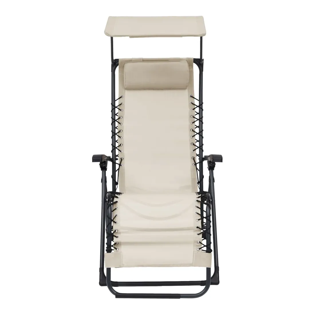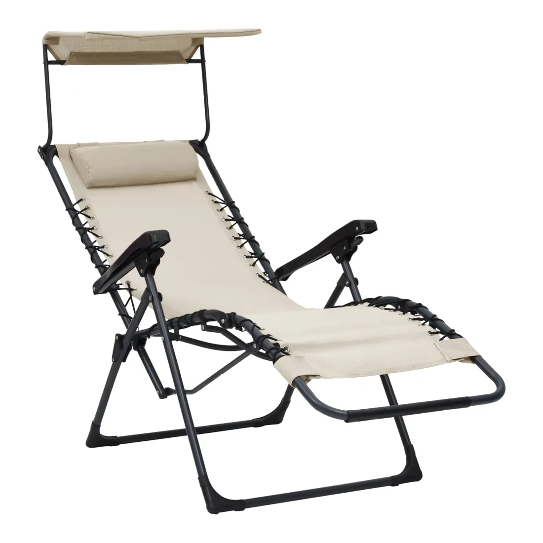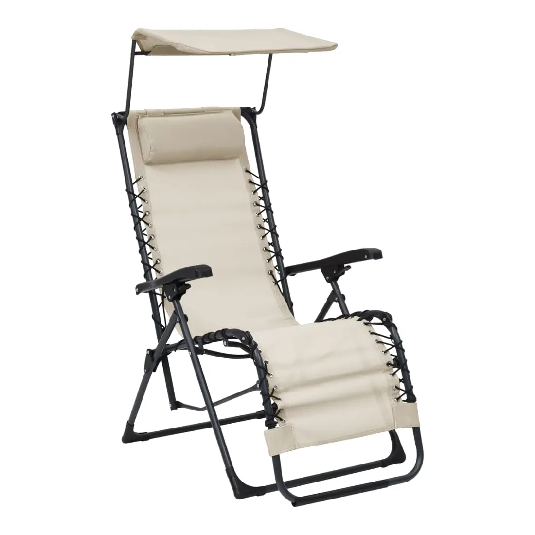 vidaXLCette chaise inclinable de terrasse est une combinaison parfaite de style et de fonctionnalité, qui sera un excellent supplément à votre terrasse, jardin, balcon ou tout autre espace intérieur et extérieur. La chaise de jardin a un cadre en acier robuste et un siège et un dossier en textilène facile à nettoyer et résistant aux intempéries pour vous servir pendant de nombreuses années. L'appui-tête rembourré est doux et confortable. Dotée d'un toit, la chaise à gravité offre une ombre fraîche sous le soleil. De plus, comme la chaise d'extérieur est légère, elle peut être facilement déplacée et pliable pour économiser de l'espace lorsqu'elle n'est pas utilisée. Remarque : afin de prolonger la durée de vie des meubles d'extérieur, nous vous recommandons de les protéger avec une housse imperméable.