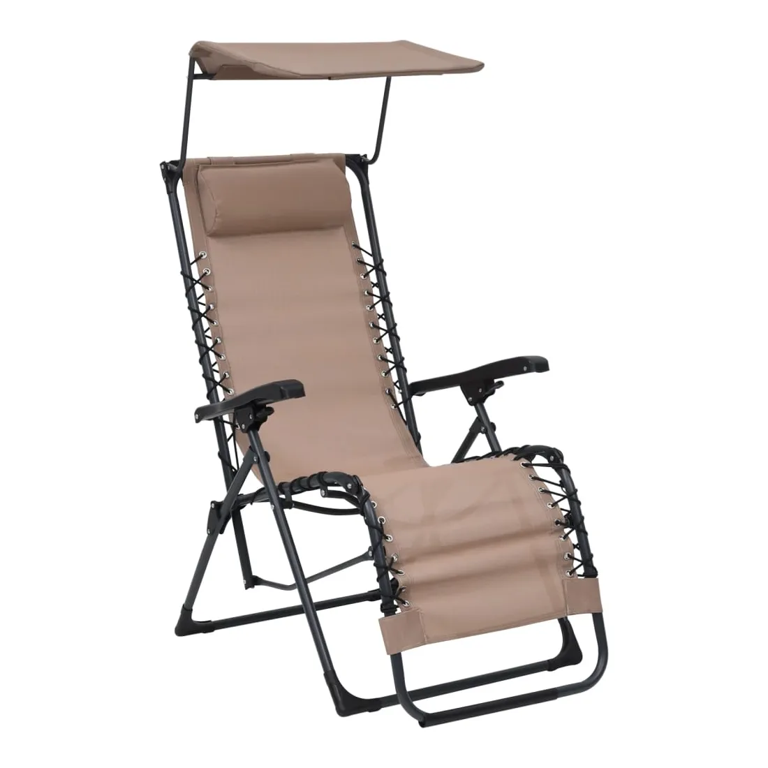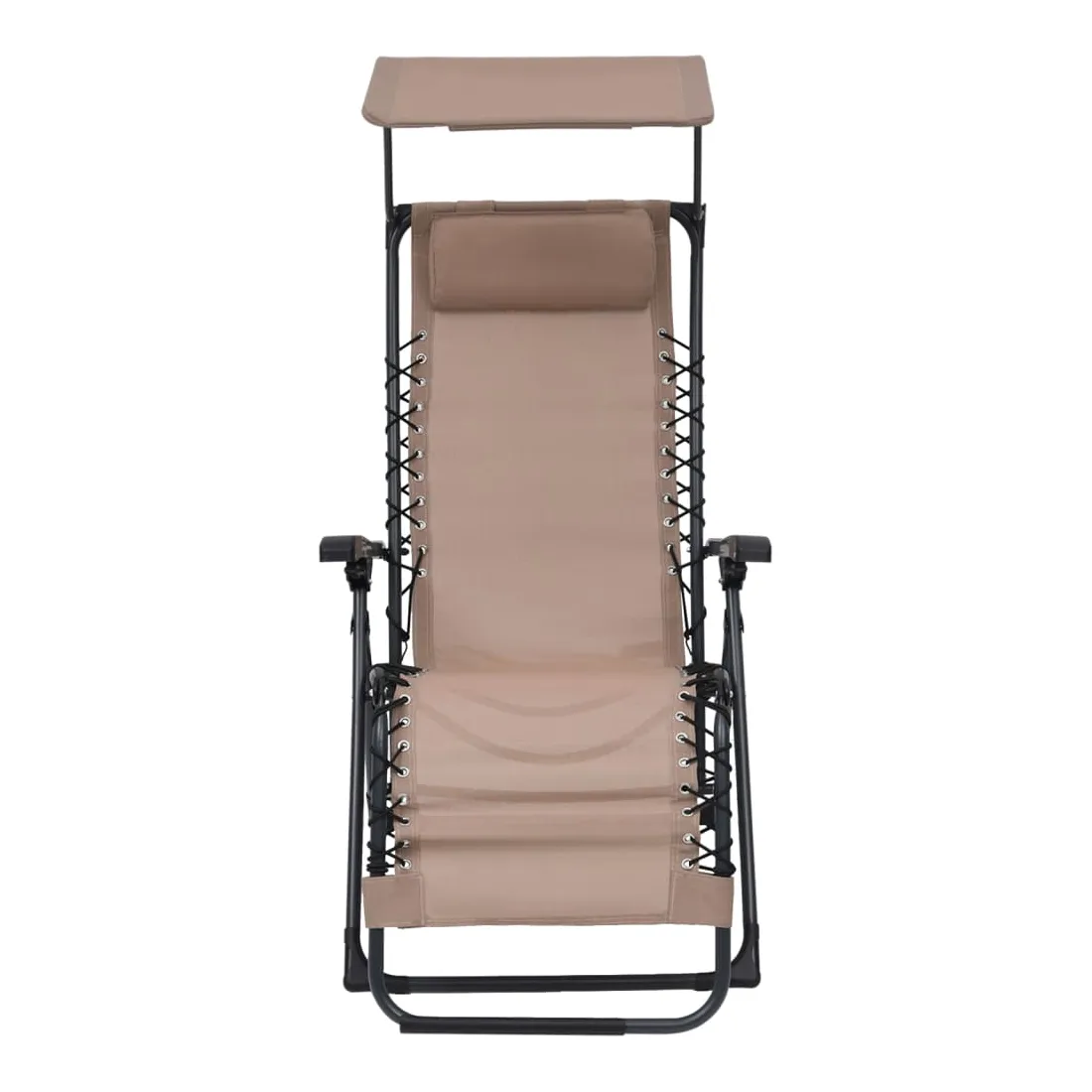 Cette chaise inclinable de terrasse est une combinaison parfaite de style et de fonctionnalité, qui sera un excellent supplément à votre terrasse, jardin, balcon ou tout autre espace intérieur et extérieur. La chaise de jardin a un cadre en acier robuste et un siège et un dossier en textilène facile à nettoyer et résistant aux intempéries pour vous servir pendant de nombreuses années. L'appui-tête rembourré est doux et confortable. Dotée d'un toit, la chaise à gravité offre une ombre fraîche sous le soleil. De plus, comme la chaise d'extérieur est légère, elle peut être facilement déplacée et pliable pour économiser de l'espace lorsqu'elle n'est pas utilisée. Remarque : afin de prolonger la durée de vie des meubles d'extérieur, nous vous recommandons de les protéger avec une housse imperméable.