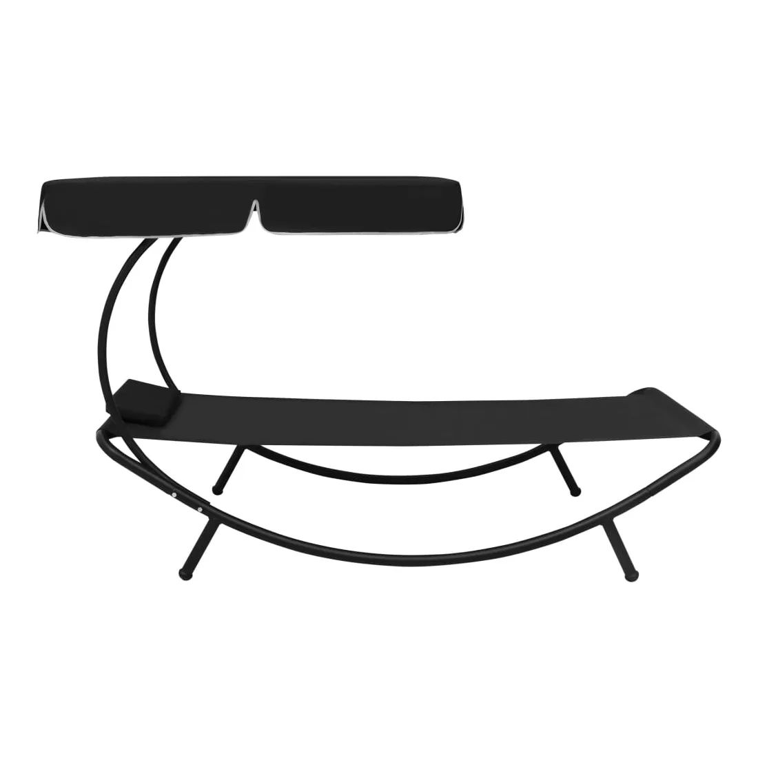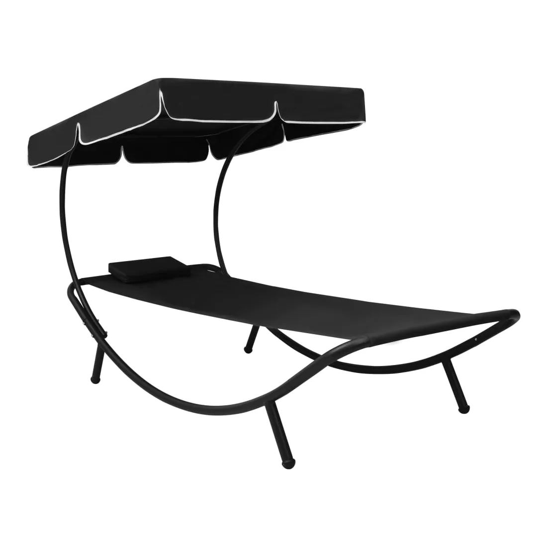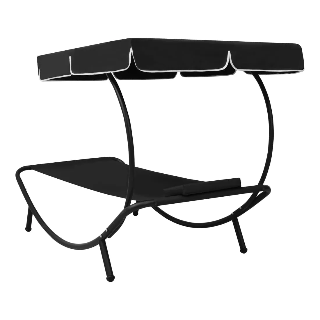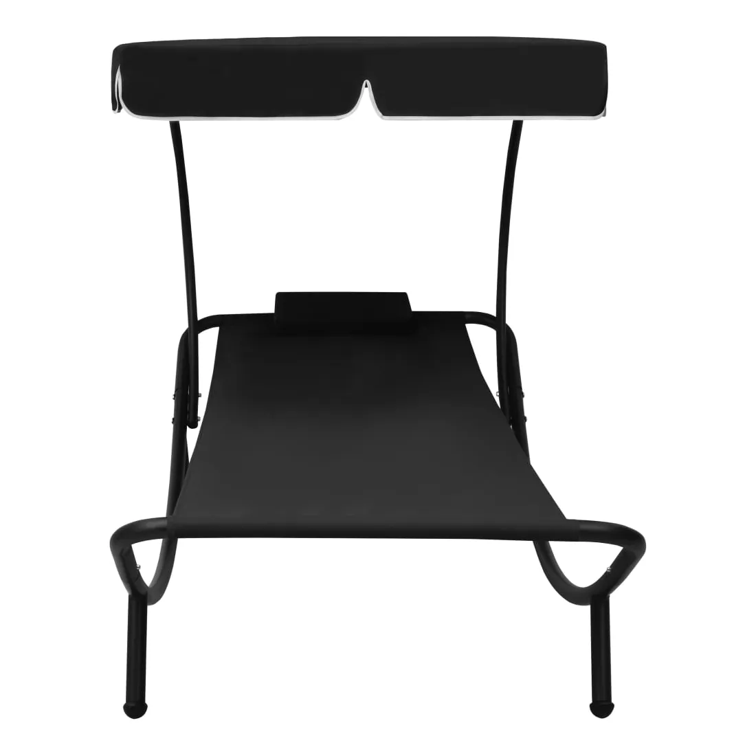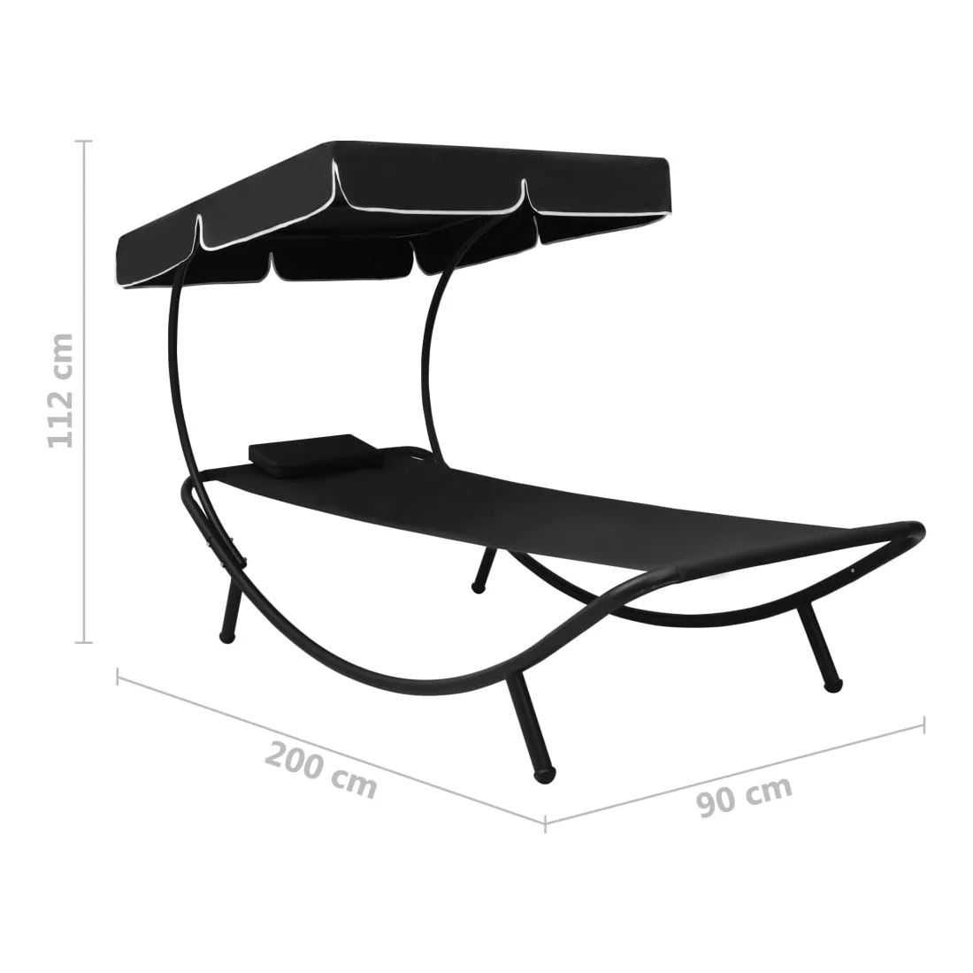 Lit de repos d'extérieur avec auvent et oreiller Noir